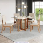 Com estrutura em MDF/MDP, cada cadeira suporta até 120 kg, oferecendo robustez e confiança para todos os usuários. O design ergonômico proporciona maior conforto durante as refeições, enquanto o acabamento fino harmoniza perfeitamente com o estilo da mesa.