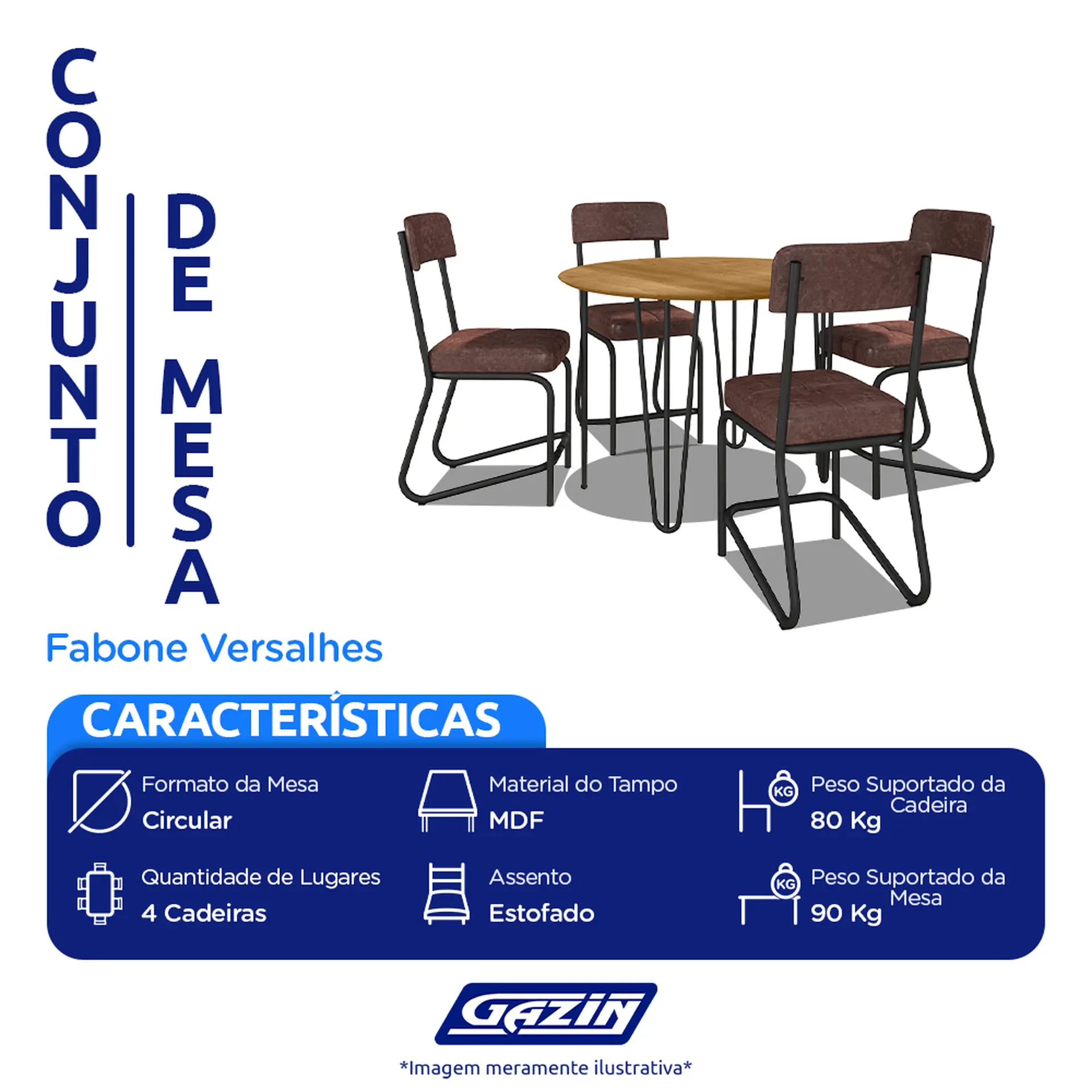 Em até 1x de R$801,45 sem jurosEm até 12x de R$75,78 com juros À vistaR$721,31no PixInformações adicionais Produtos Relacionados Conjunto de Mesa 4 Cadeiras Tampo MDF com Assento Estofado Versalhes Fabone – Preto Fosco Cód.