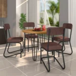 Em até 1x de R$976,95 sem jurosEm até 12x de R$92,38 com juros À vistaR$879,26no PixConjunto de Mesa 4 Cadeiras Tampo MDF com Assento Estofado Versalhes Fabone – Preto Fosco