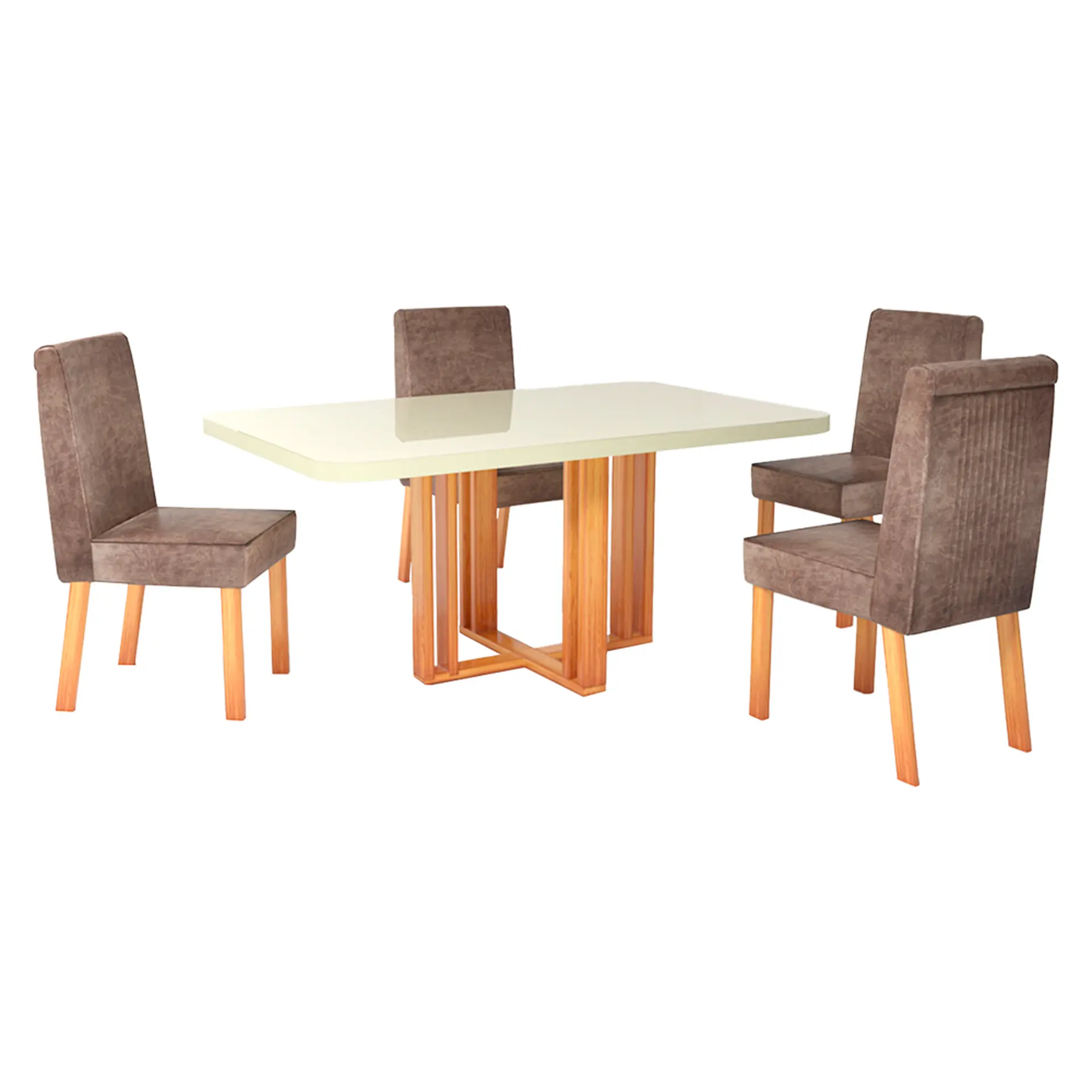 Conjunto de Mesa 4 Cadeiras Tampo MDF e Vidro Ghaia Bom Pastor – Naturale Off