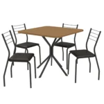 Conjunto de Mesa 4 Cadeiras Tampo MDP com Assento Estofado Creta Kappesberg Se você busca sofisticação, praticidade e durabilidade para compor o ambiente das suas refeições, o é a escolha ideal. Com um design moderno e funcional, este conjunto foi pensado para oferecer o máximo de conforto, aliando materiais de qualidade a um visual elegante que combina com diversos estilos de decoração. Confira mais detalhes: Design moderno e funcional!O conjunto conta com 4 cadeiras revestidas em corino preto, que proporcionam um visual contemporâneo e sofisticado, além de serem fáceis de limpar no dia a dia. O formato quadrado da mesa facilita a disposição em diferentes ambientes, seja em cozinhas, salas de jantar ou espaços gourmet. Ideal para quem gosta de praticidade sem abrir mão da estética.Conforto garantido para todas as ocasiões!Pensando no bem-estar durante as refeições, as cadeiras vêm com assentos estofados, oferecendo mais comodidade para você, sua família e suas visitas. Além disso, cada cadeira suporta até 130 kg, demonstrando a robustez e segurança da estrutura. Perfeito para quem valoriza conforto e resistência em móveis que acompanham a rotina.Qualidade e durabilidade!A mesa possui tampo em MDP, um material resistente e durável, ideal para o uso cotidiano, com capacidade para suportar até 90 kg. A estrutura foi desenvolvida para oferecer estabilidade, com um acabamento que valoriza ainda mais o conjunto. Sobre a marca: qualidade Kappesberg!A Kappesberg possui sede em Tupandi, RS, com mais de 25 mil pontos de venda. A Kappesbrg hoje é o maior grupo do segmento da América Latina. Sendo premiada 7 vezes consecutivas com o Prêmio de Maior Exportador de Móveis da América Latina. Possui uma responsabilidade social em que a empresa destina anualmente verbas para o Fundo da Criança e do Adolescente de municípios próximos. E faz produção de móveis a partir de madeira de reflorestamento.