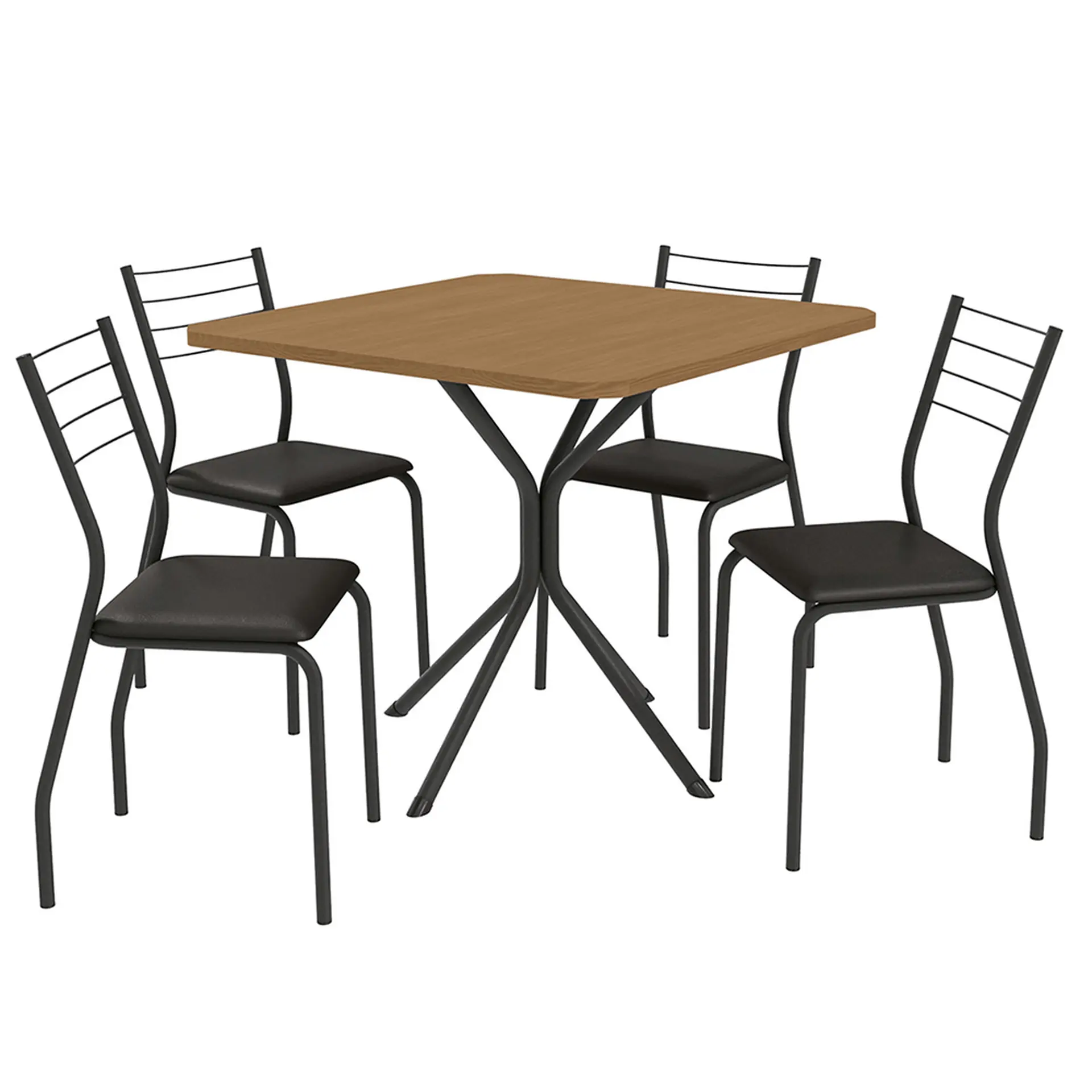 Conjunto de Mesa 4 Cadeiras Tampo MDP com Assento Estofado Creta Kappesberg – Preto Fosco/Canela