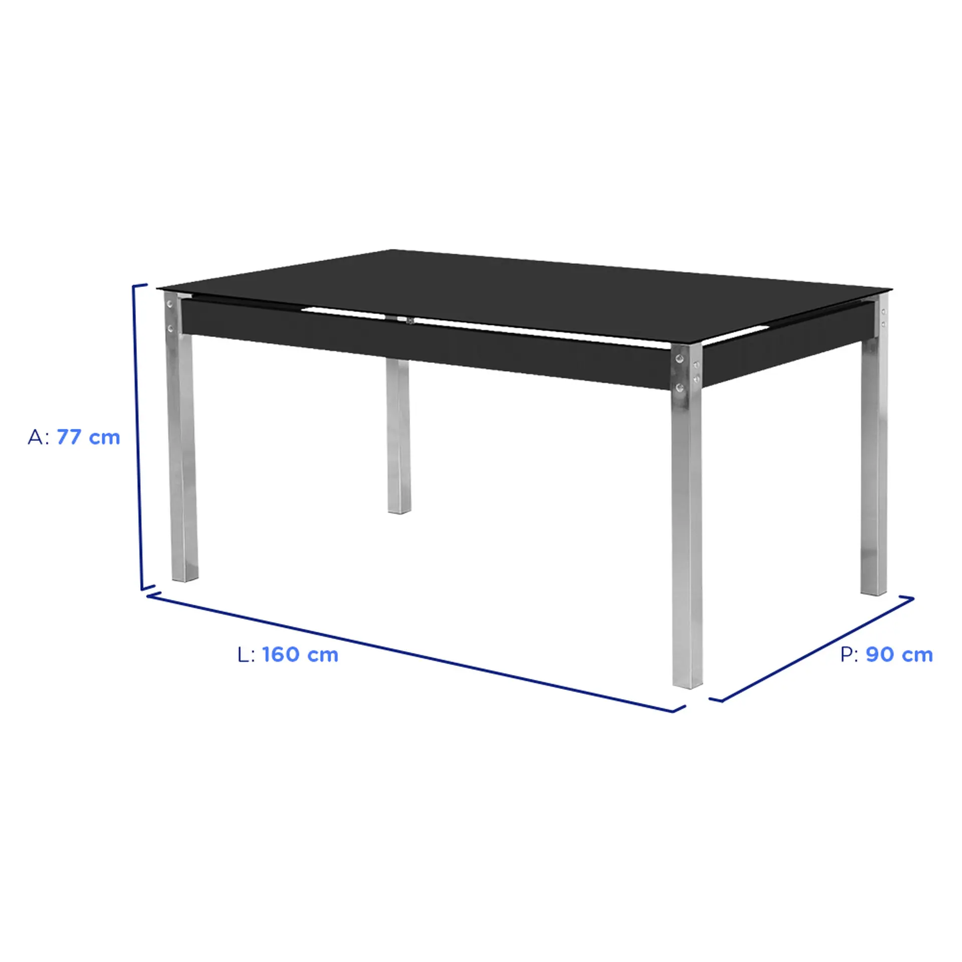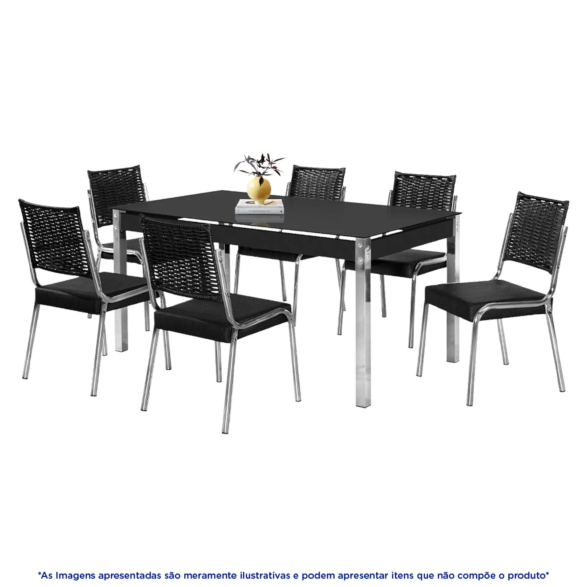 Conjunto de Mesa 6 Cadeiras Tampo de Vidro CR RT Aço Nobre – Cromada/Preto