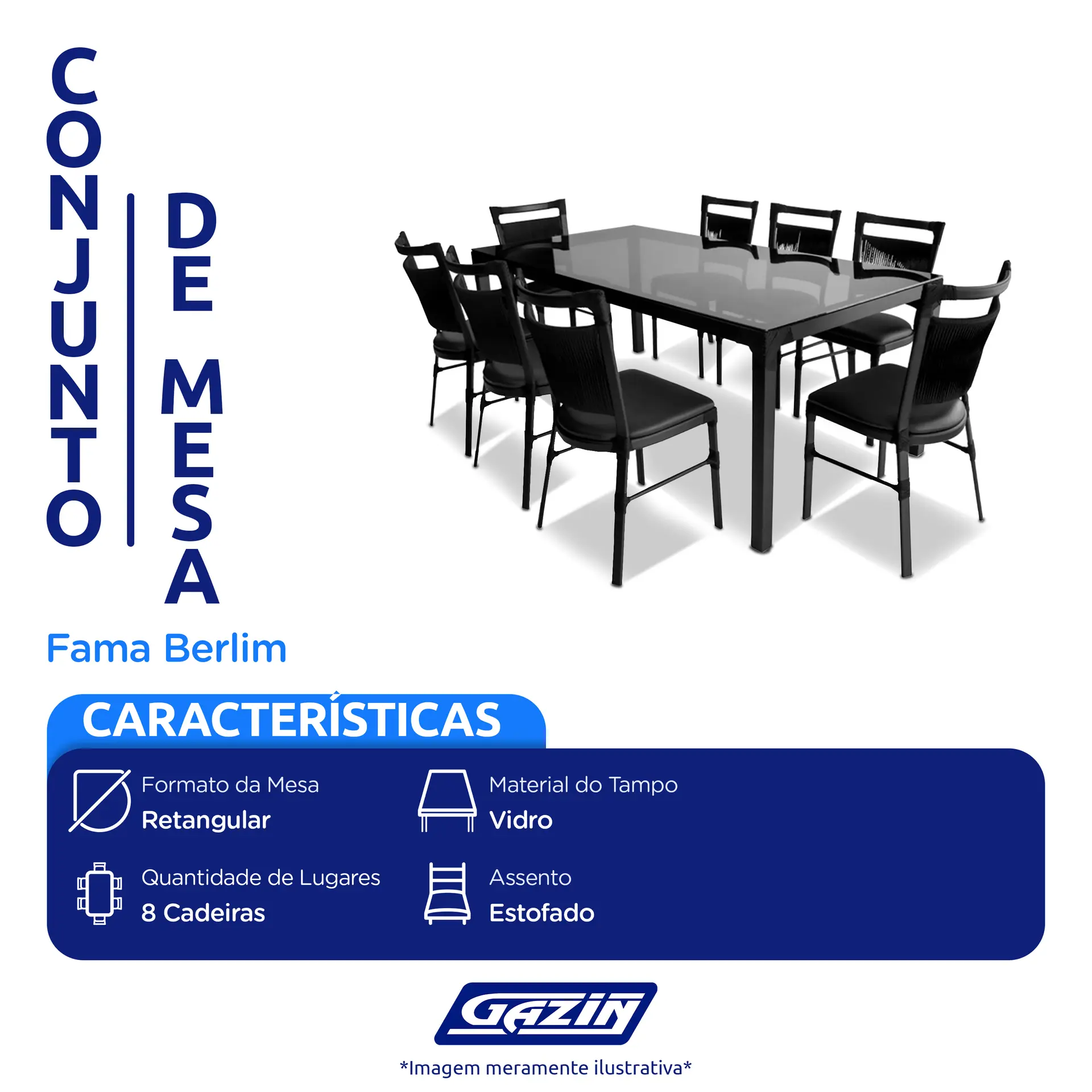 Conjunto de Mesa 8 Cadeiras Berlim Cadeiras Fama – Preto