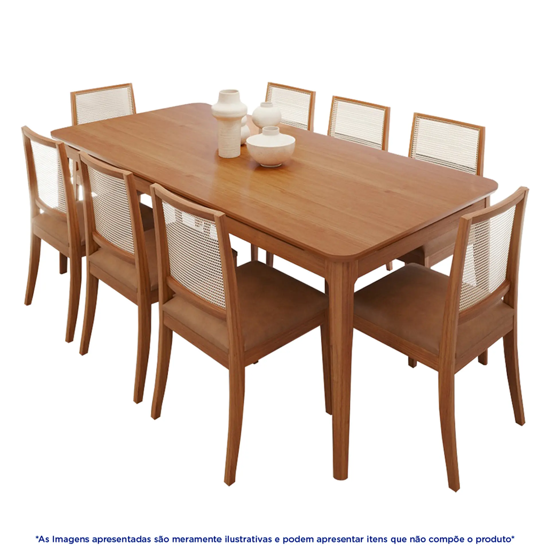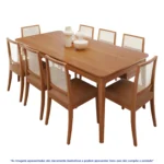 Conjunto de Mesa 8 Cadeiras Tampo MDF com Assento Estofado Baoba Cimol Você está à procura de sofisticação, qualidade e conforto para os seus momentos especiais? O é a escolha perfeita para você! Composto por uma elegante mesa retangular e 8 cadeiras estofadas, este conjunto é a escolha perfeita para reunir a família e amigos com conforto e sofisticação. Confira mais detalhes: Design moderno e elegante!O Conjunto de Mesa Baobá Cimol foi desenvolvido para oferecer charme e requinte à sua sala de jantar. Sua mesa retangular apresenta um design robusto e sofisticado, garantindo um toque contemporâneo à decoração. O tampo em MDF proporciona um acabamento refinado e durável, enquanto a pintura UV confere maior resistência e um brilho impecável. Além disso, o formato retangular favorece a disposição dos lugares, garantindo mais espaço e conforto para todos os convidados.Máximo conforto!As 8 cadeiras que acompanham o conjunto foram projetadas para oferecer não apenas beleza, mas também conforto excepcional. Com assento e encosto estofados, elas proporcionam uma experiência aconchegante, ideal para longos momentos à mesa. Além disso, sua estrutura robusta e bem construída garante durabilidade e segurança para o uso diário, sendo perfeita para diferentes ocasiões, desde reuniões familiares até jantares especiais.Durabilidade e resistência!Pensando na sua praticidade, o Conjunto Baobá Cimol é fabricado com materiais de alta qualidade. A mesa possui estrutura em MDF, garantindo maior resistência e estabilidade, suportando até 40 kg no tampo. Seu acabamento refinado proporciona proteção contra desgastes, tornando-o um móvel duradouro e de fácil manutenção. Seja para o dia a dia ou para ocasiões especiais, este conjunto foi desenvolvido para acompanhar sua rotina com funcionalidade e estilo.Sobre a marca: qualidade Cimol!A Cimol iniciou sua trajetória em 1991 na cidade de Linhares, Espírito Santo. A empresa é especializada na fabricação de camas, móveis para sala de jantar e complementos para sua casa. Qualidade, sustentabilidade, respeito e confiança são pilares para o sucesso da marca.