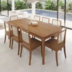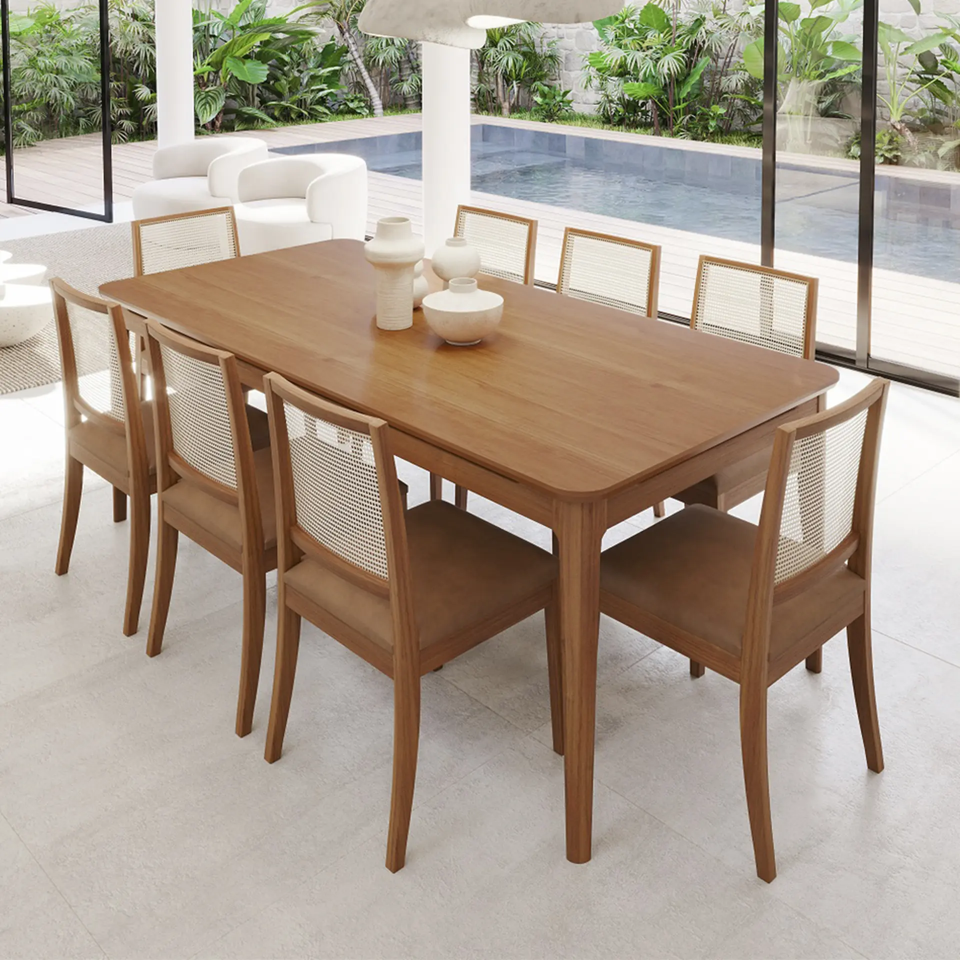 Conjunto de Mesa 8 Cadeiras Tampo MDF com Assento Estofado Baoba Cimol – Madeira/Cinanomo/Kaki