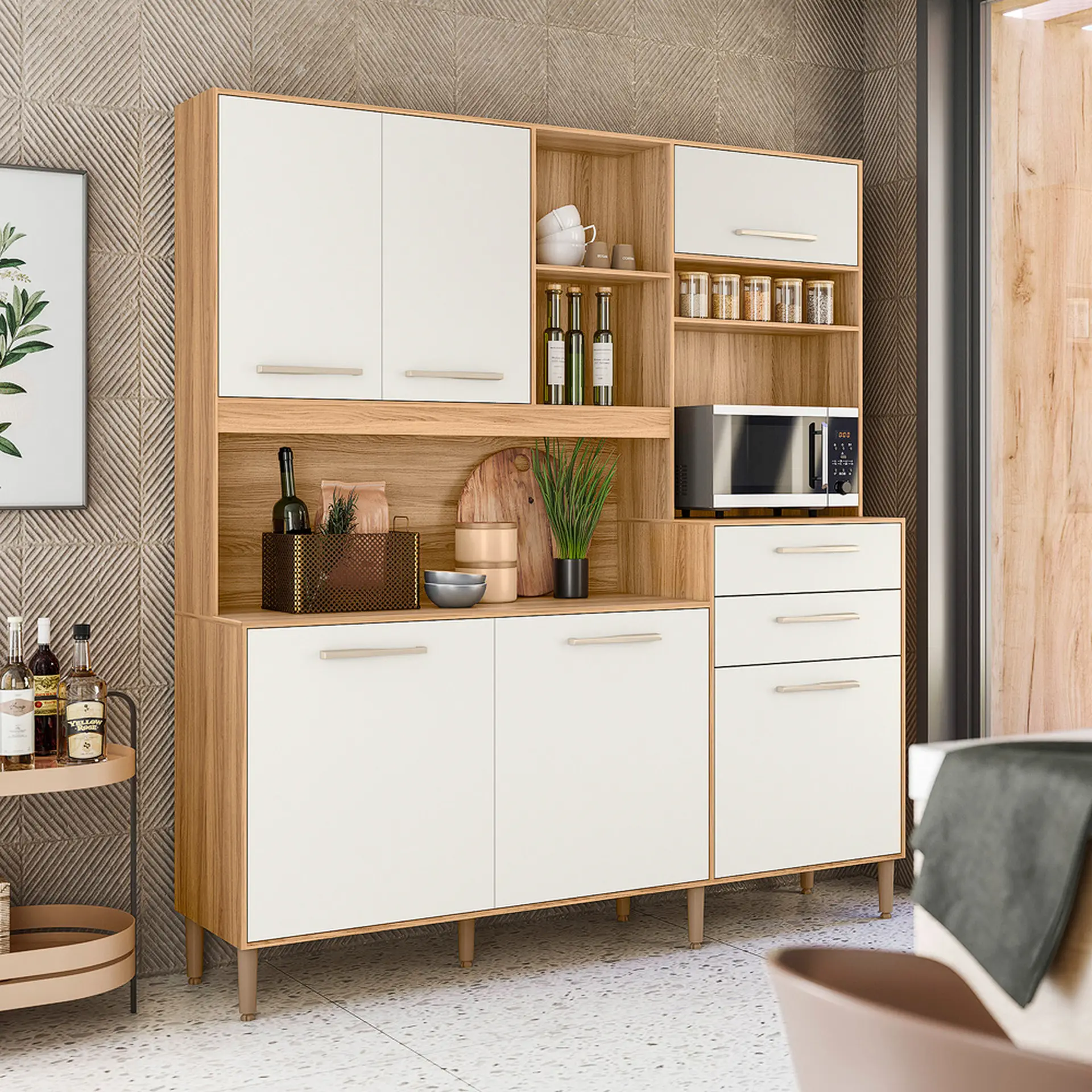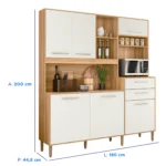Composto por 6 portas, que possuem ótima divisão interna, ele conta ainda com 2 gavetas, ideais para guardar e organizar utensílios domésticos.