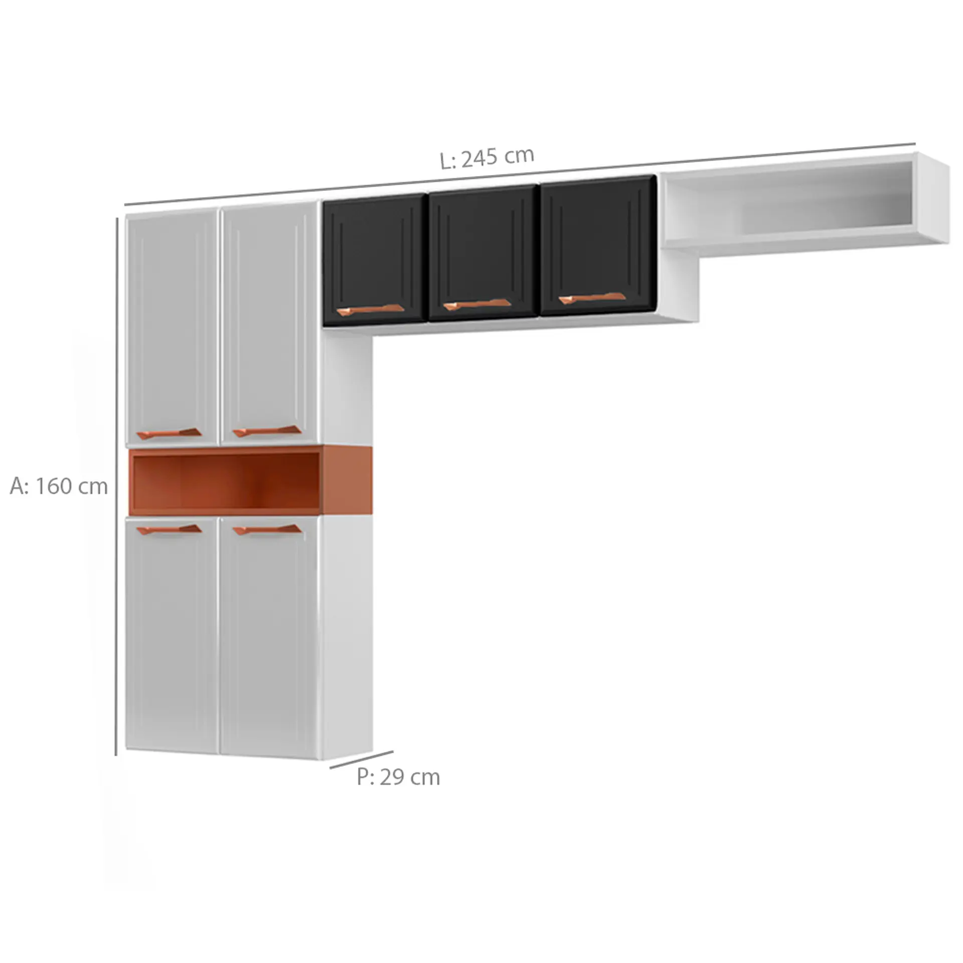Cozinha Modulada 3 Peças 7 Portas 2 Prateleiras Manu Telasul – Branco/Preto