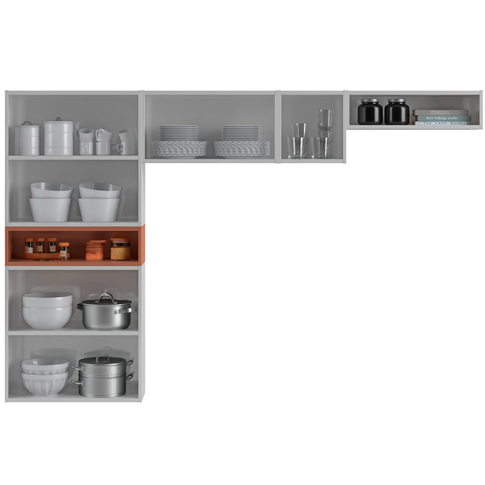 , a cozinha Manu Telasul oferece compartimentos espaçosos para organizar pratos, panelas, alimentos e utensílios com facilidade. Além disso,