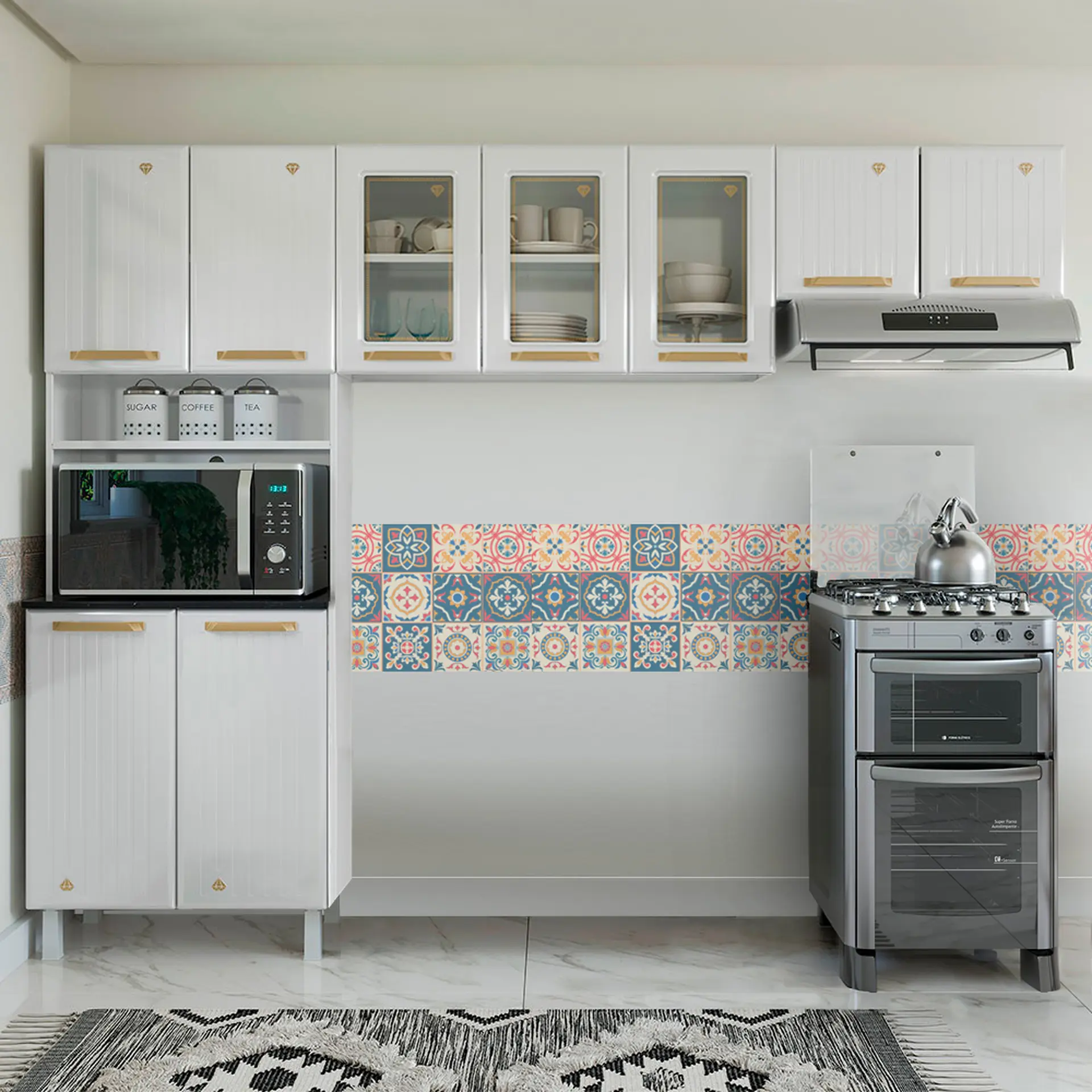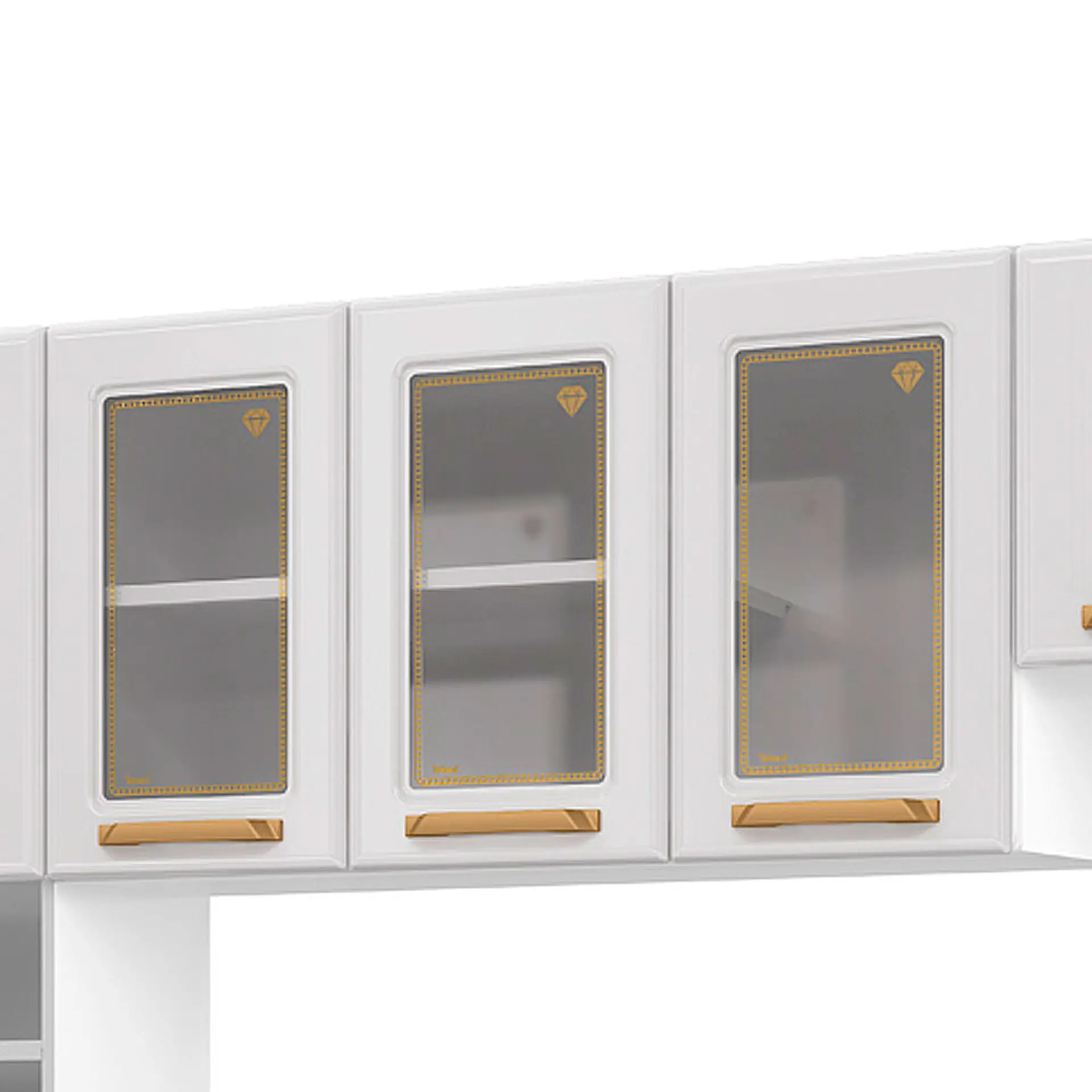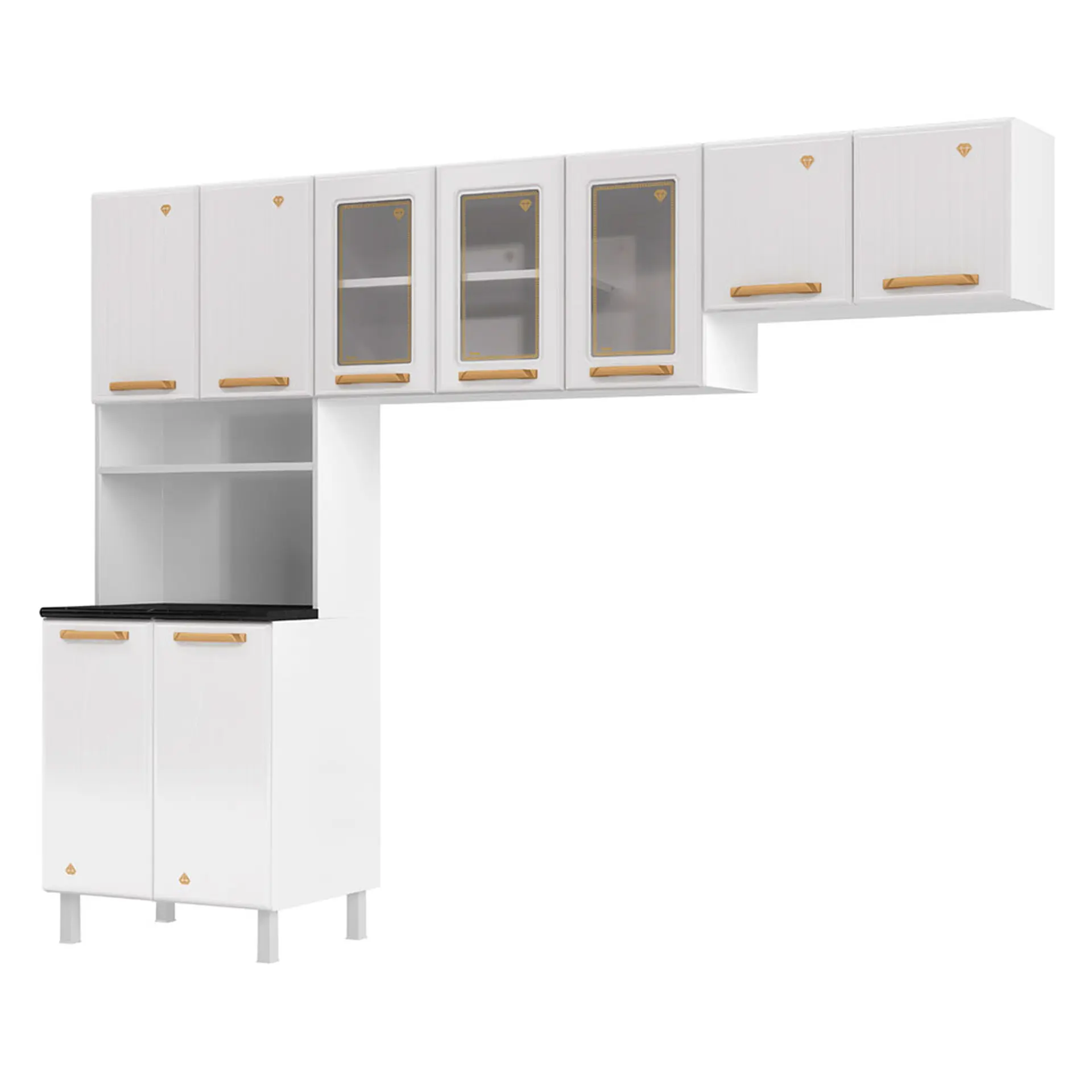 Cozinha Modulada 3 Peças 9 Portas Aço Diamante Telasul – Branco/dourado