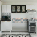Em até 1x de R$568,43 sem jurosEm até 12x de R$53,75 com juros À vistaR$511,59no PixCozinha Modulada 3 Peças 9 Portas Aço Diamante Telasul – Branco/Preto