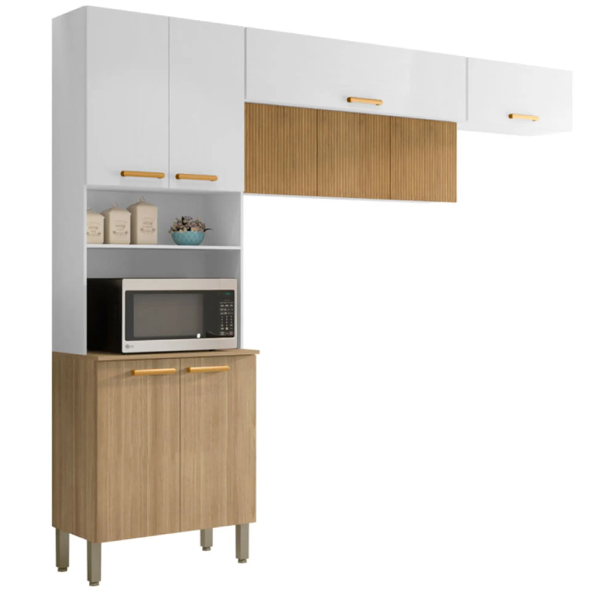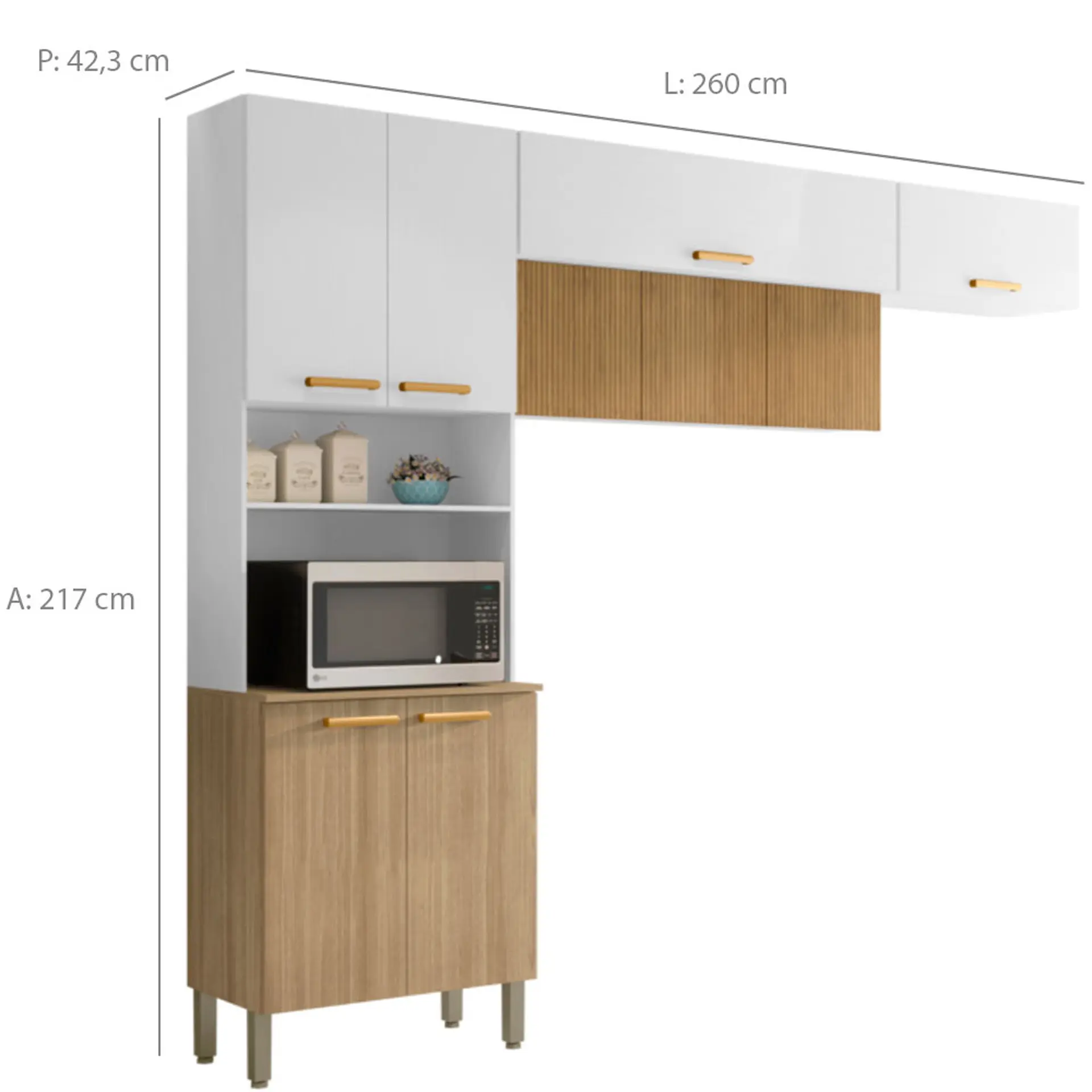 entre armários aéreos, balcão, tampo e até torre quente! O modelo em