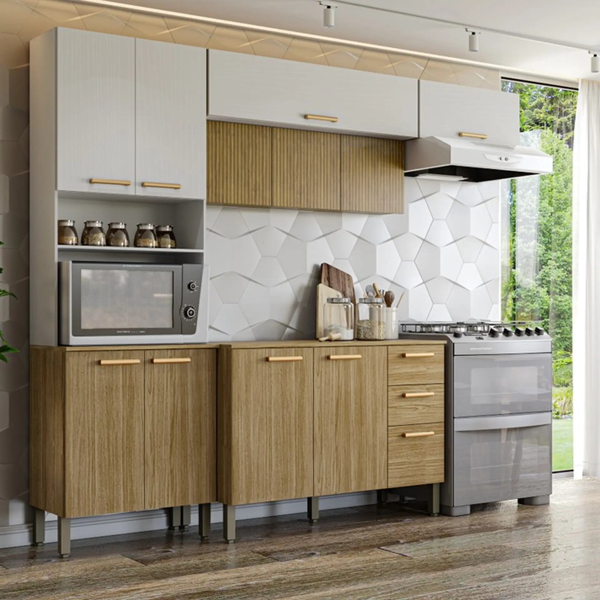 Cozinha Modulada 6 Peças 12 Portas 3 Gavetas Macadamia Telasul - Freijo/Branco