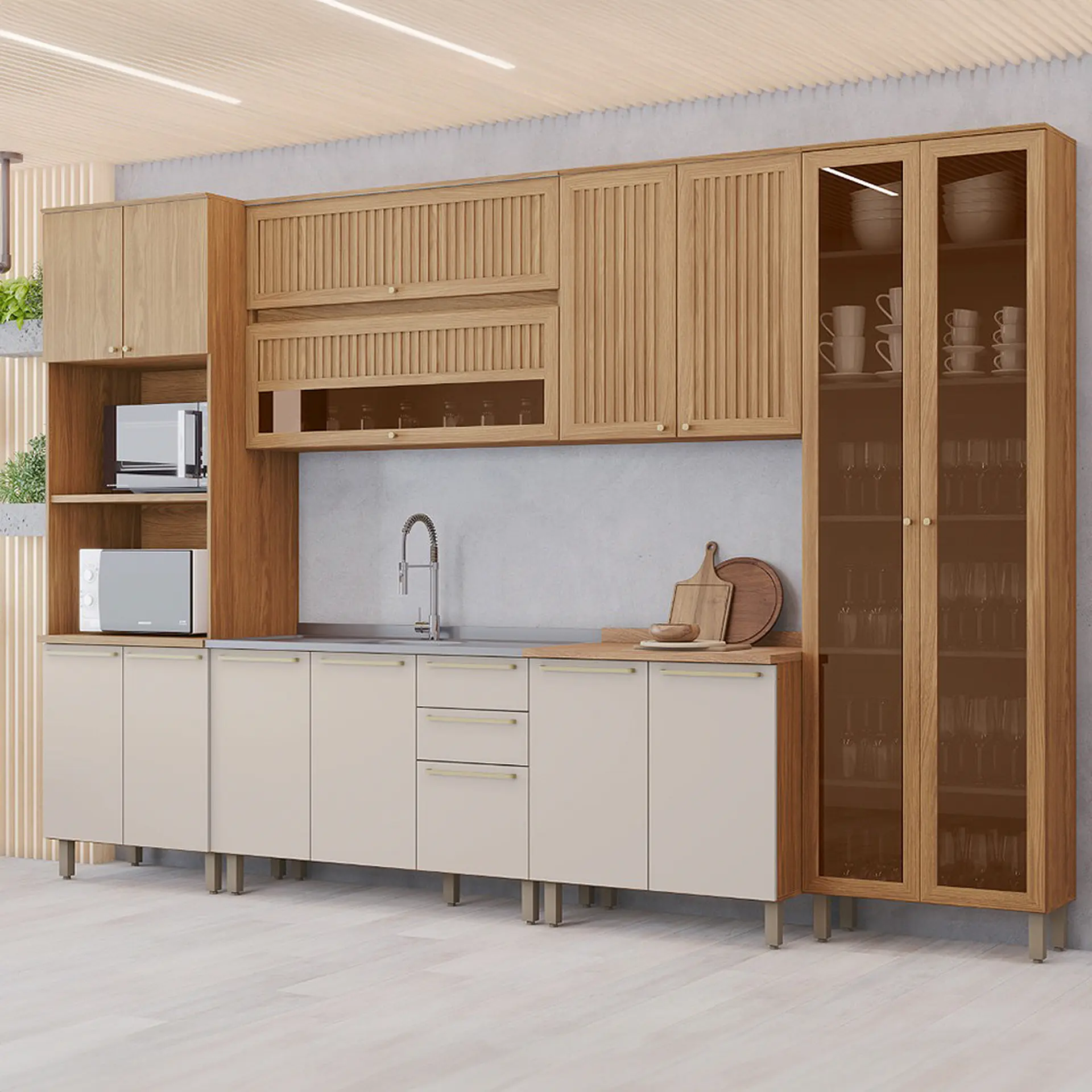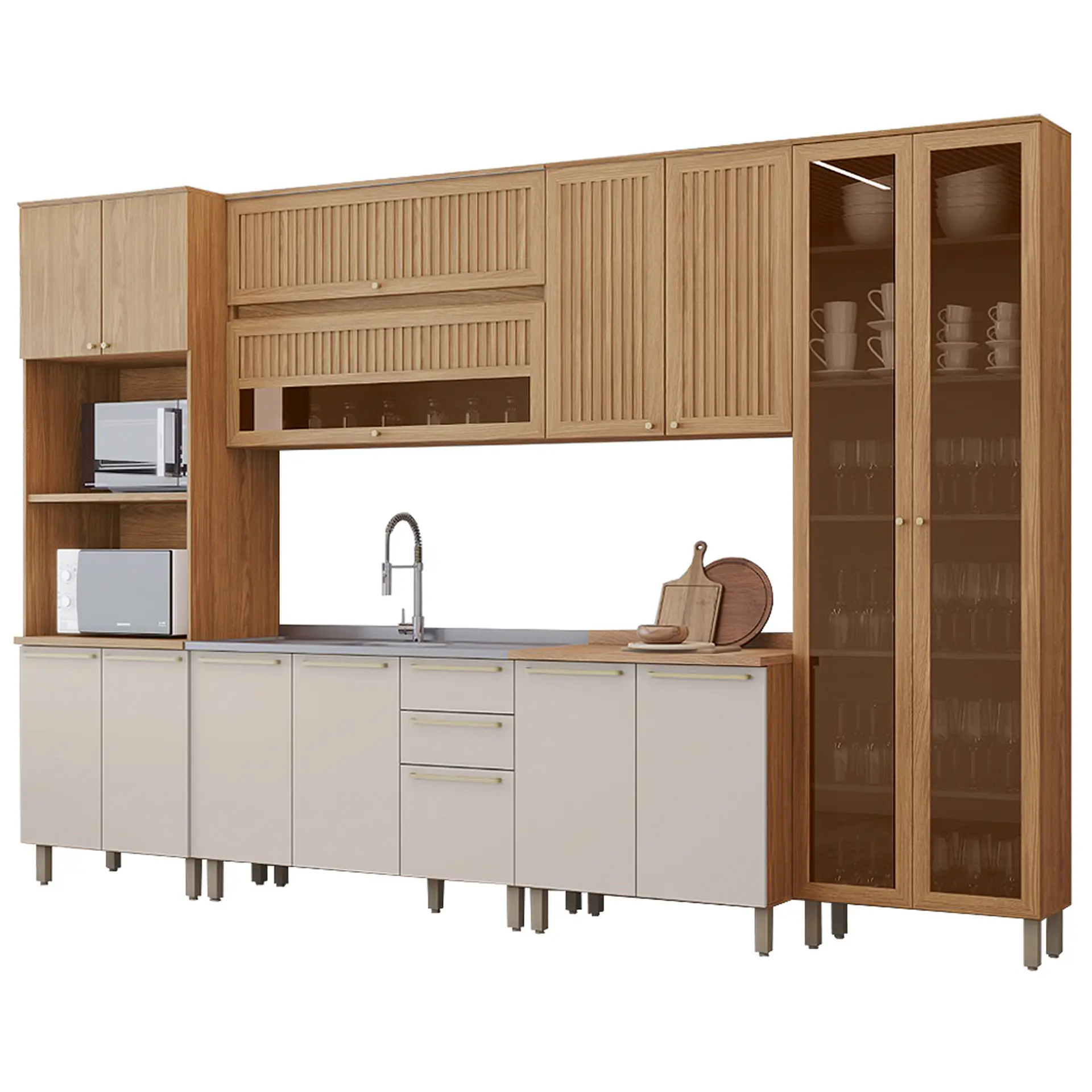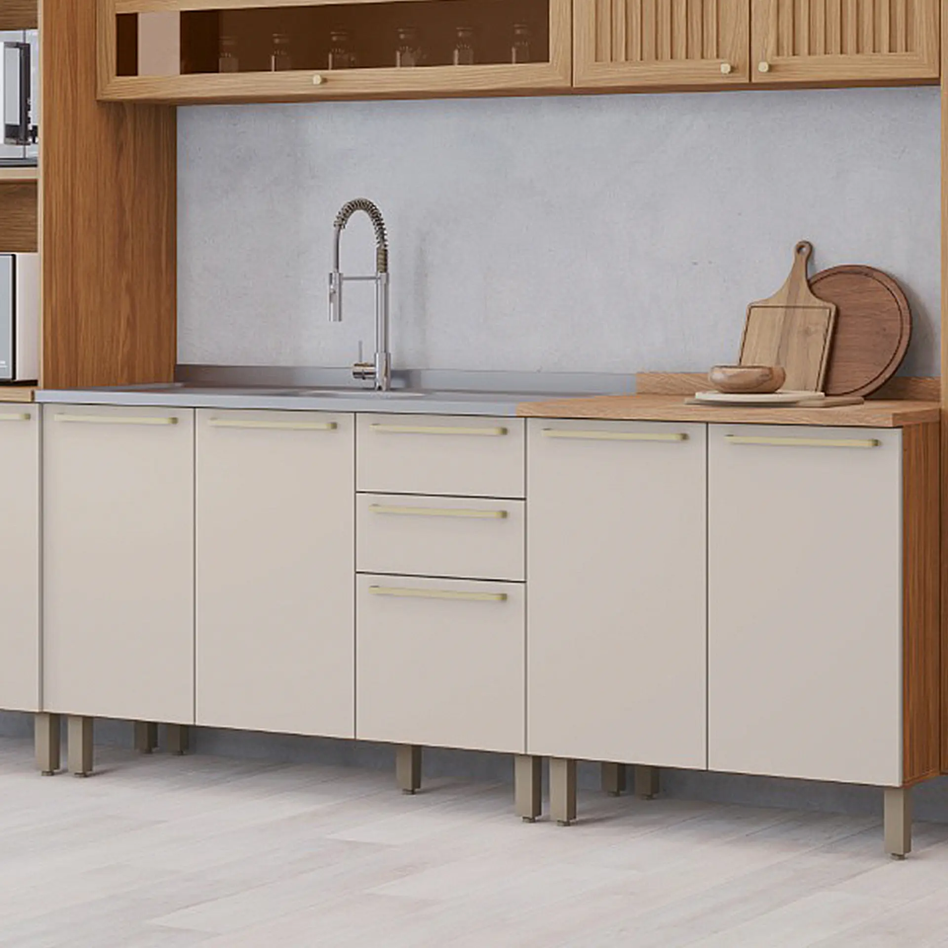 Cozinha Modulada 6 Peças 15 Portas 2 Gavetas Requinte Henn – Nature/Areia HP