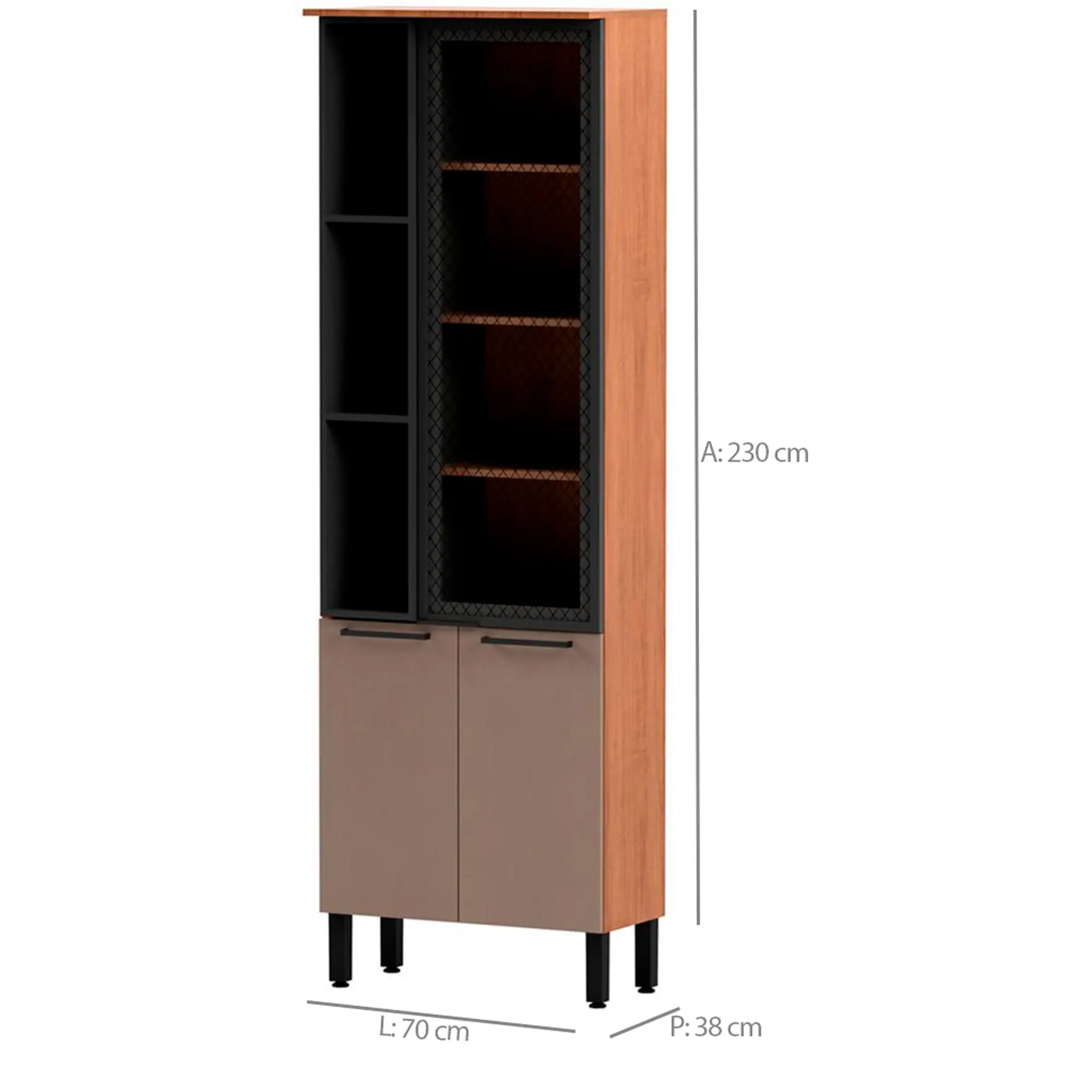 Cristaleira 3 Portas MDP e Vidro Temperado com Nichos Caiena Telasul – Mel/Fume