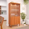 para organizar todos os seus itens da forma que desejar, ideal para expor as mais belas peças. Além disso, os objetos que não desejar manter expostos, armazene-os na parte inferior, que conta com 2 portas com detalhes em ripado e interior espaçoso com