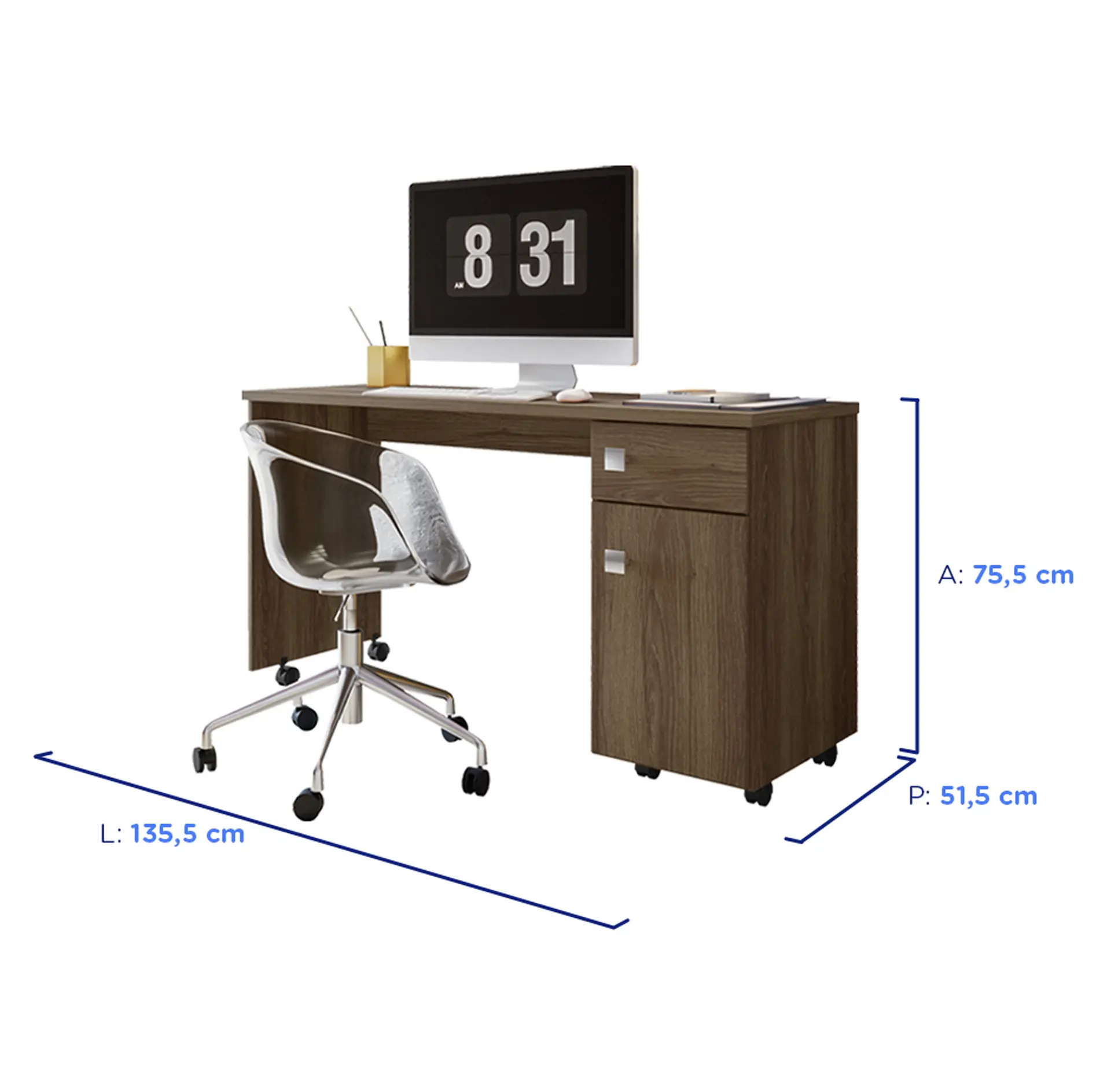 ESCRIVANINHA 1 PORTA 1 GAVETA ESTRUTURA EM MDP MALTA LUKALIAM
