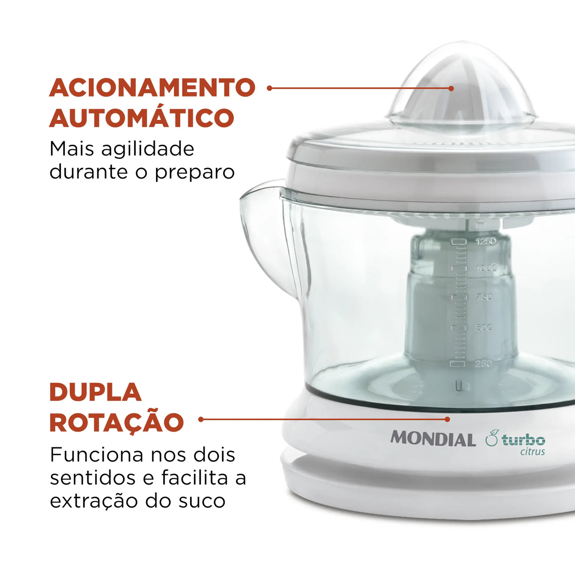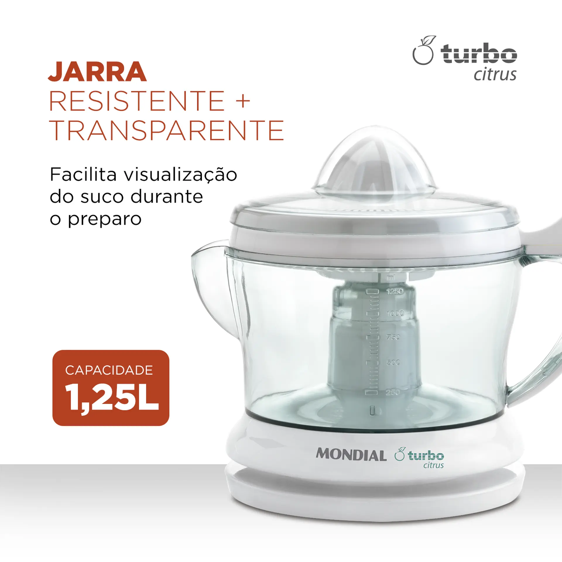 Espremedor de Frutas Mondial Turbo Citrus E-01 1,25L 25W – Branco – 220 Volts