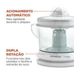 Gira automaticamente nos dois sentidos e facilita a extração do suco.