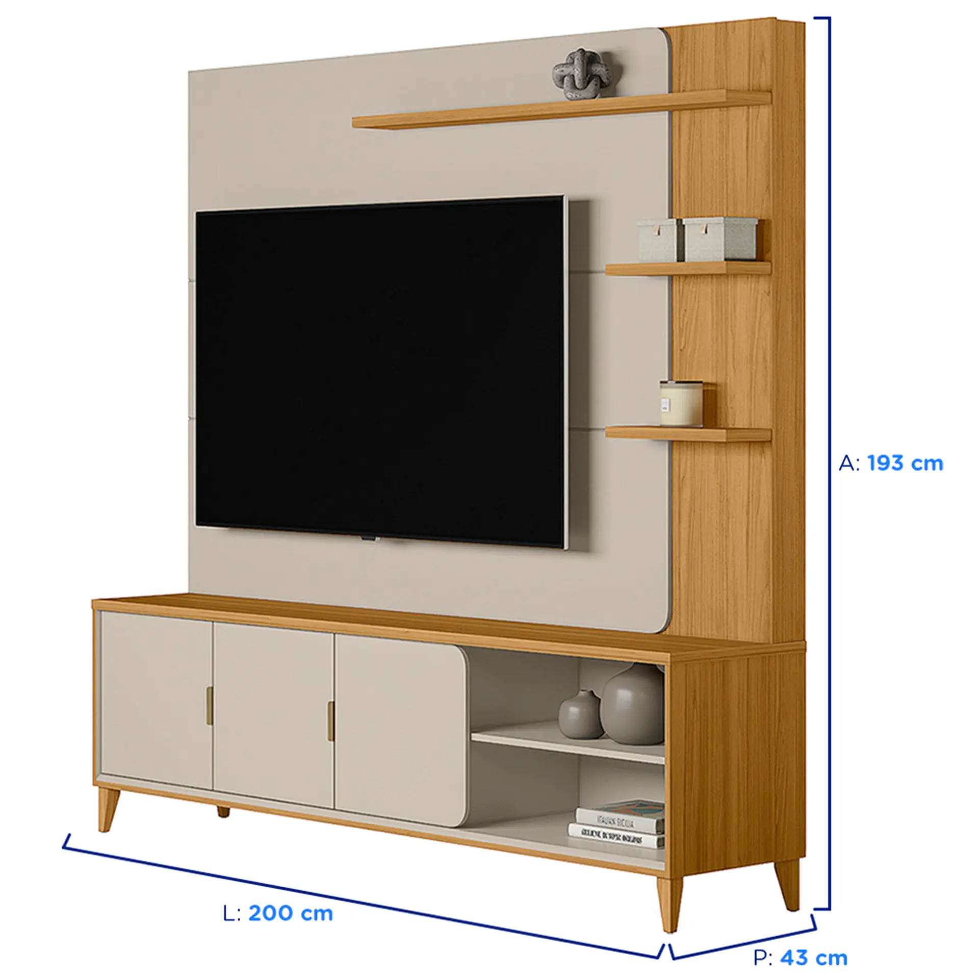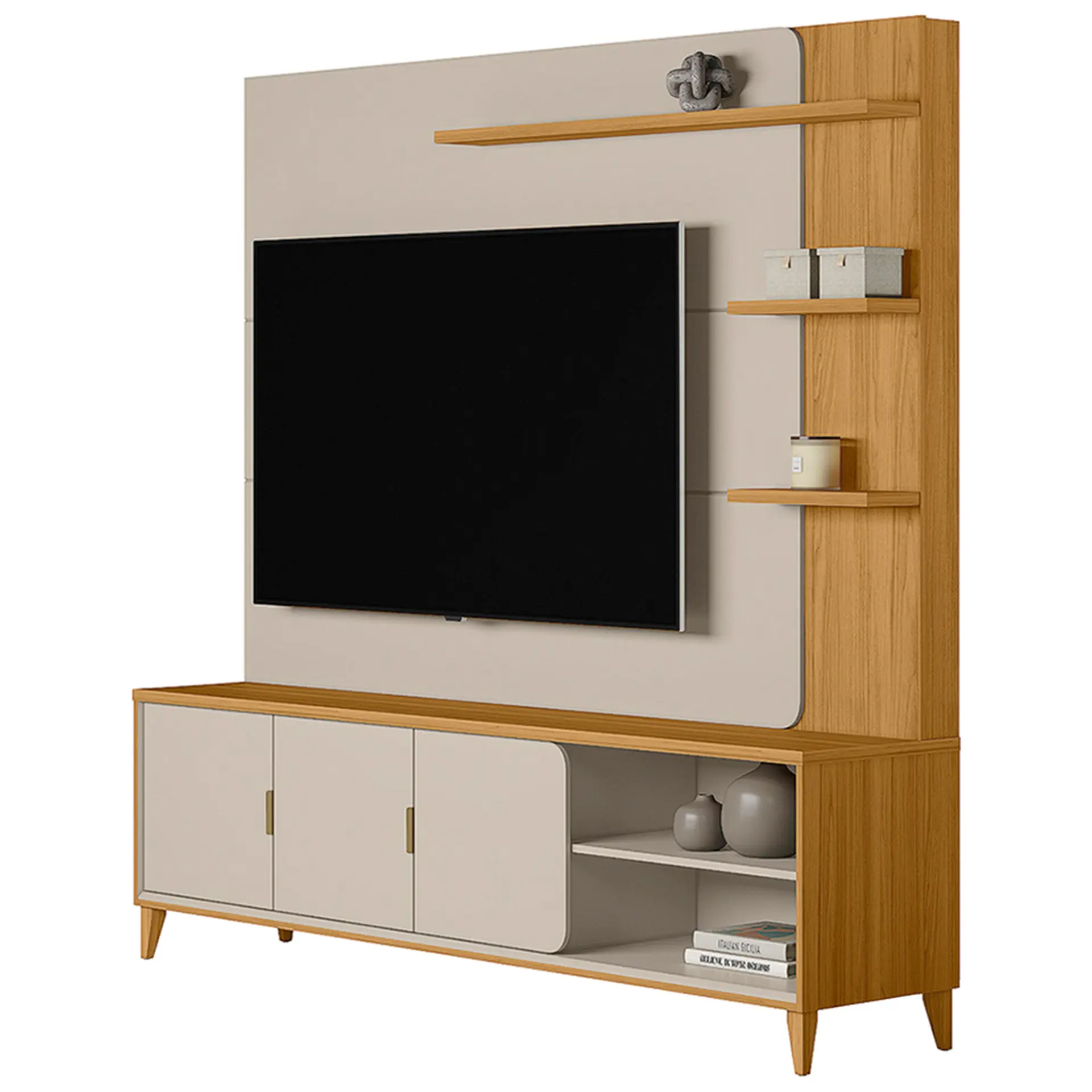 Estante Home para TV até 70″ 3 Portas MDP MDF Napoli Linea Brasil – Tauari/Off White Fosco