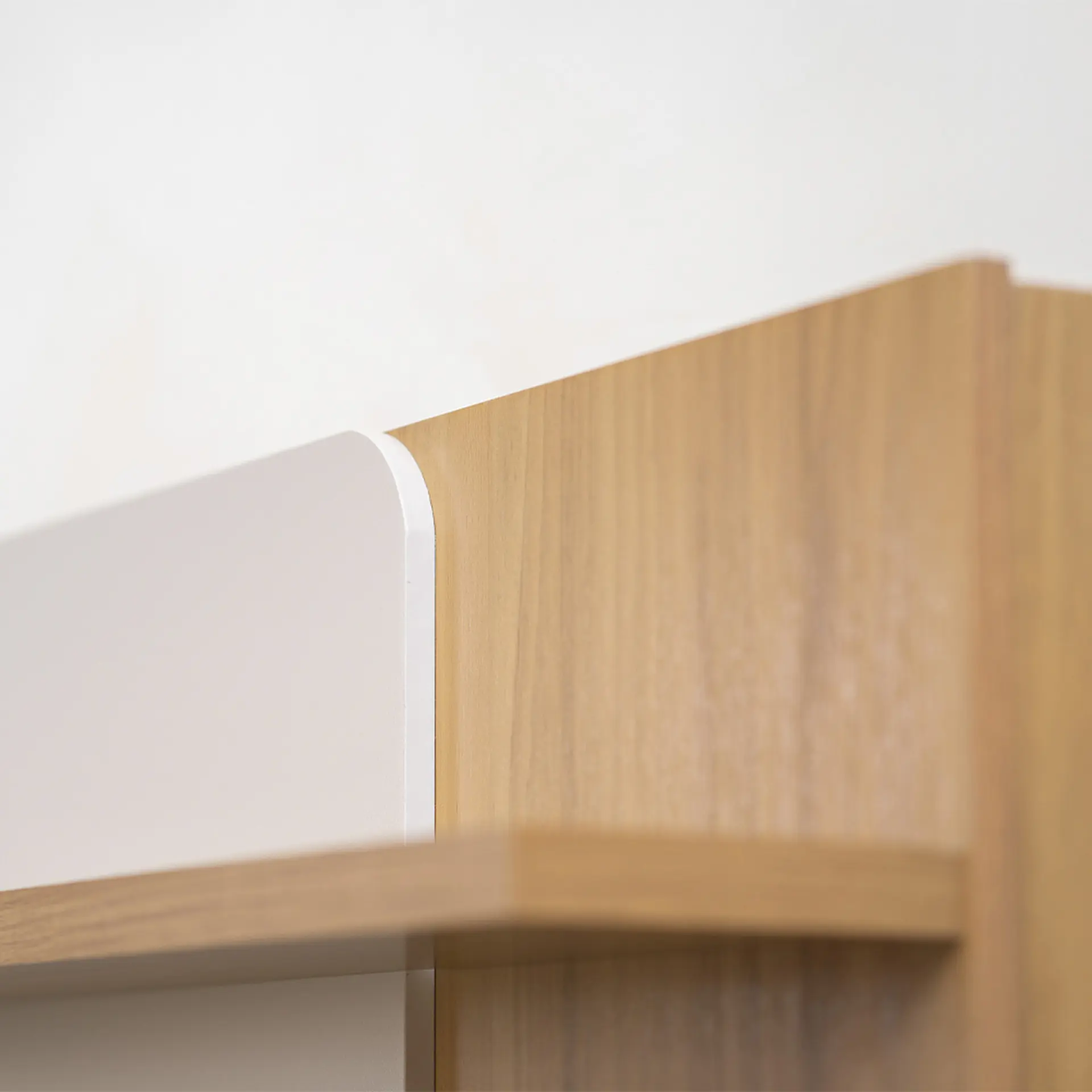 O modelo conta com portas arredondadas e nichos para decoração, isso permite que você crie um espaço harmonioso, enquanto mantém a organização e o conforto. O design moderno e clean se adapta facilmente a diferentes estilos de decoração, tornando seu ambiente ainda mais agradável.