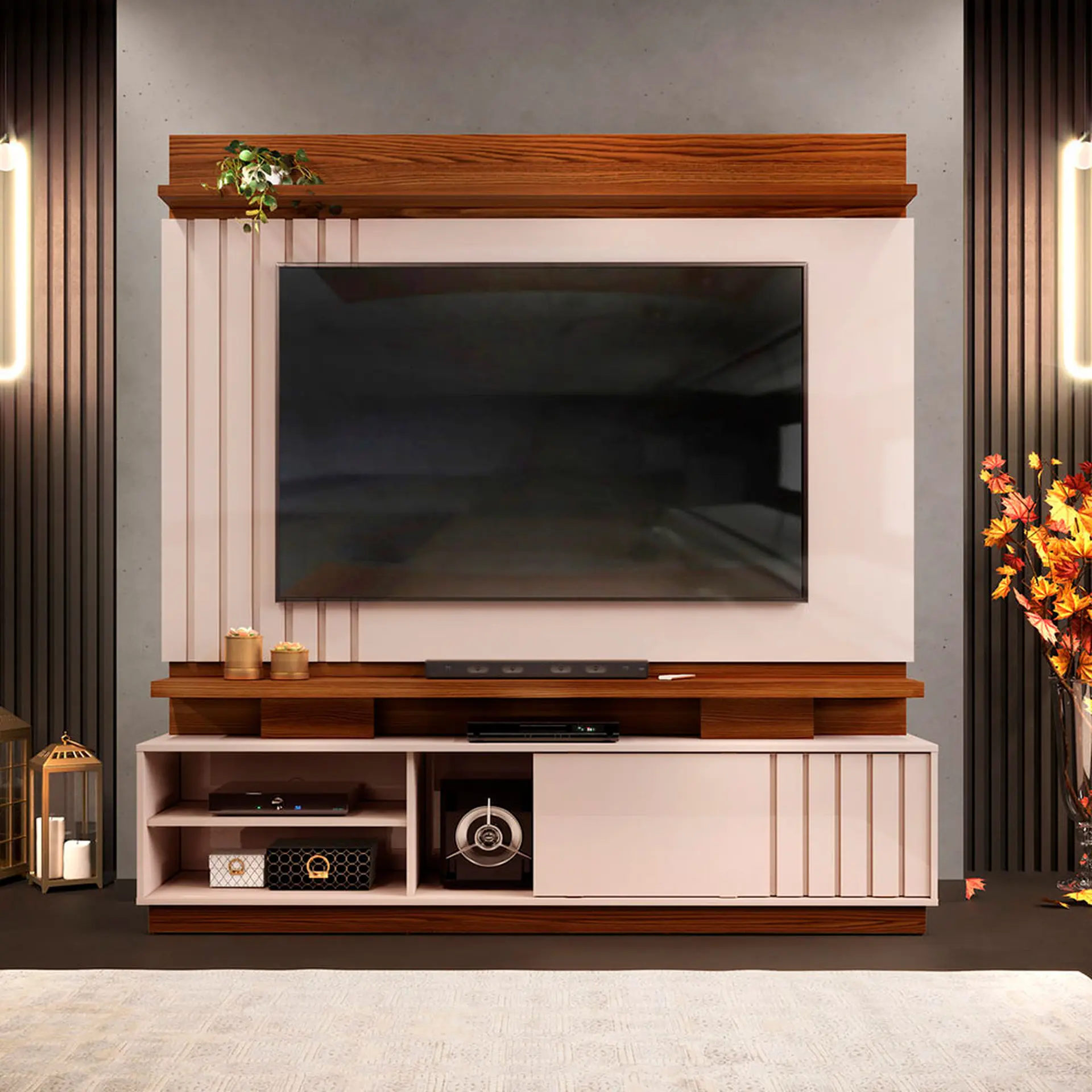 Estante Home para TV até 70″ MDP e MDF 1 Porta Detroit DJ Móveis – Marroquim/Off White