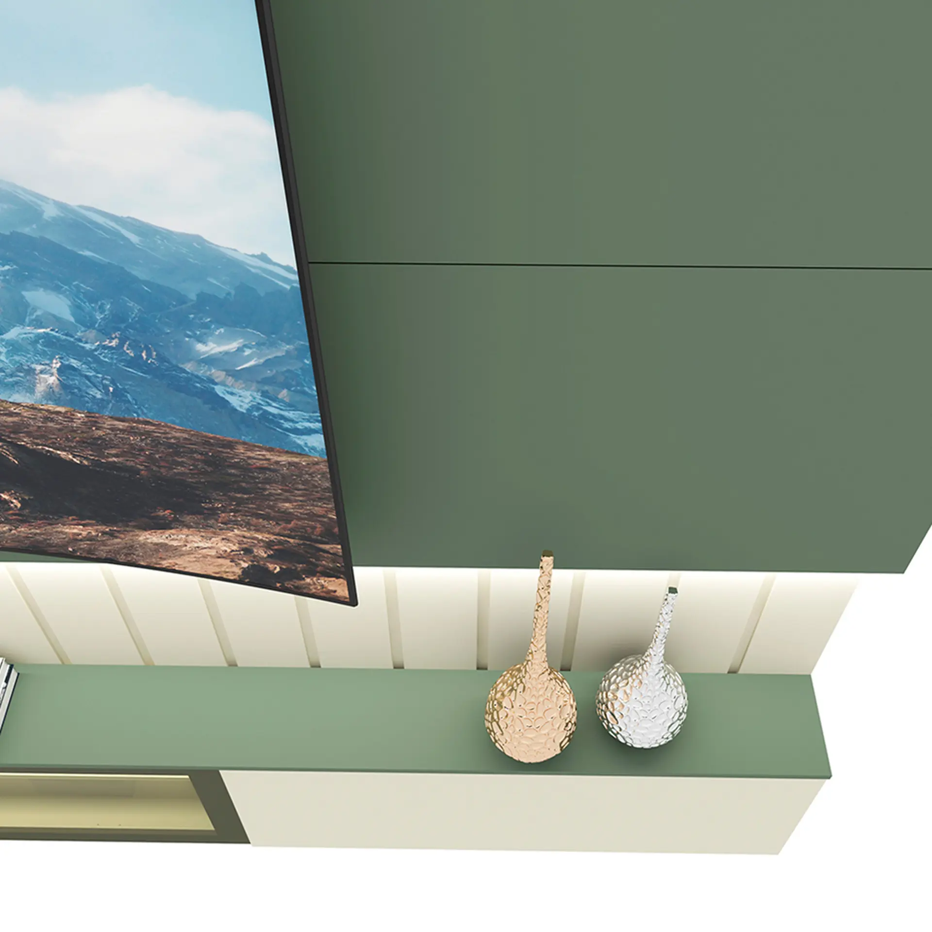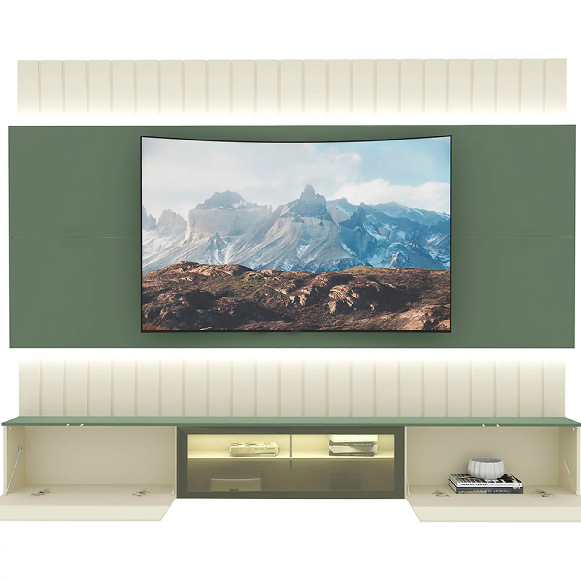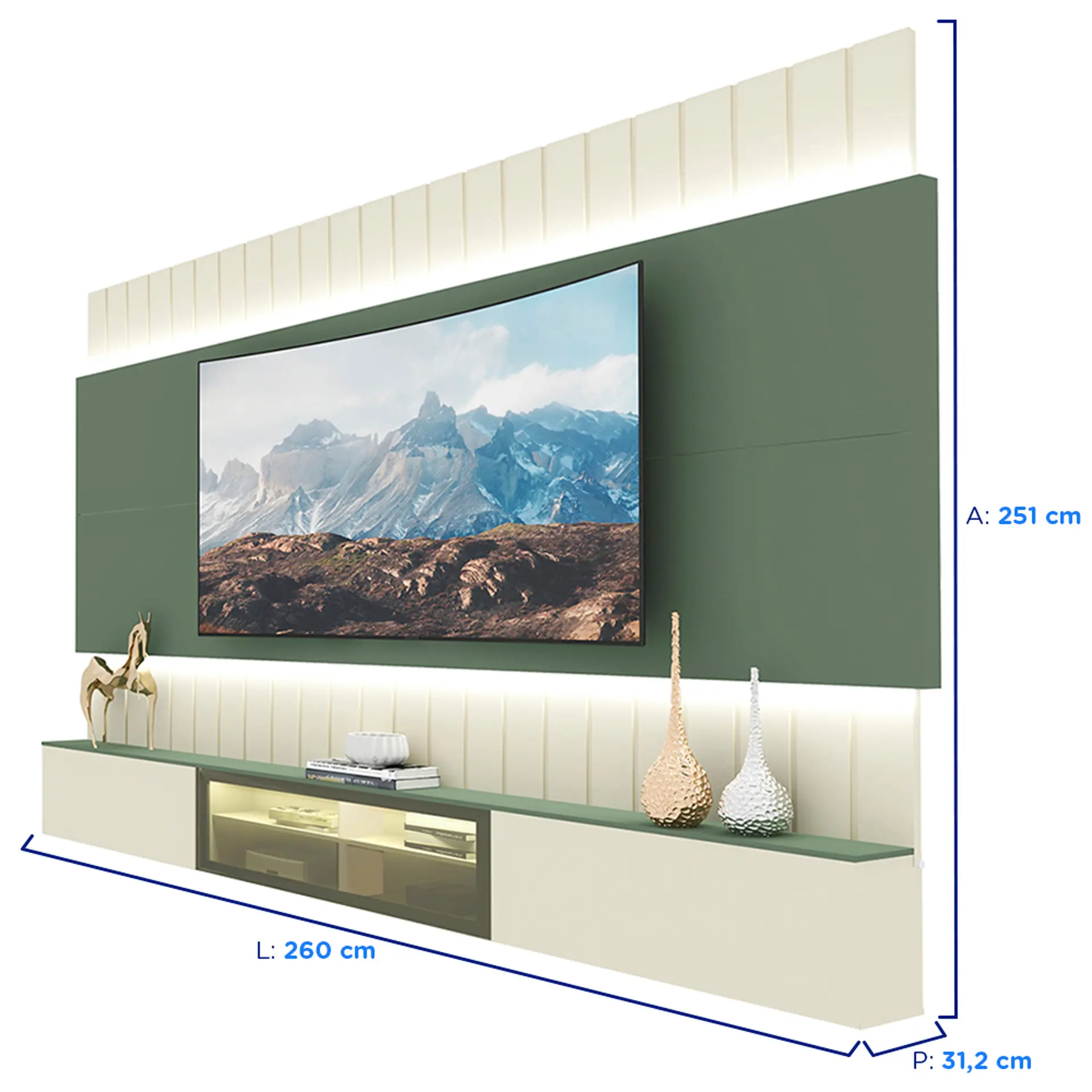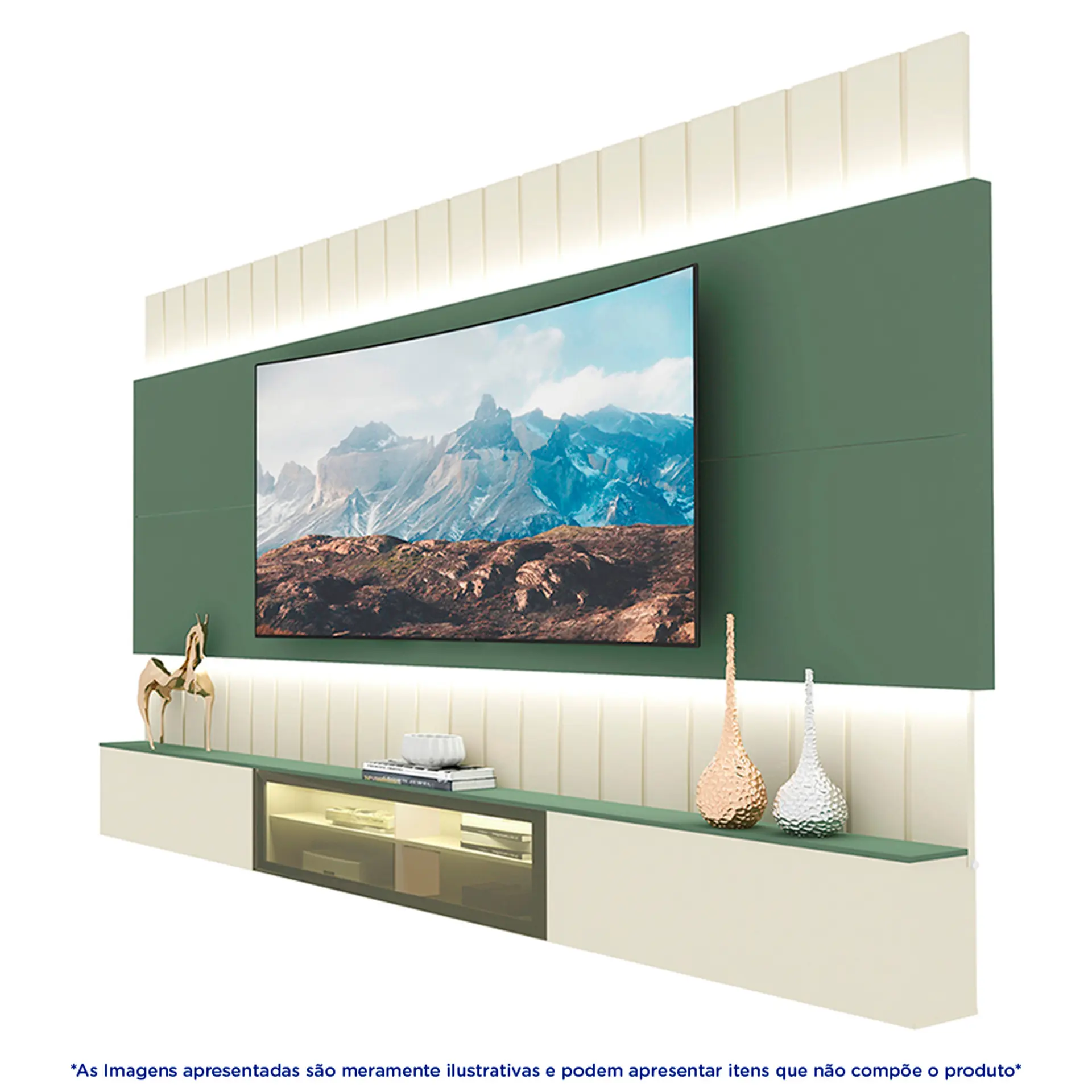Estante Home para TV até 85″ 3 Portas Soberano Gelius – Off White/Verde Floresta