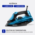 Em até 1x de R$243,10 sem jurosEm até 12x de R$22,99 com juros À vistaR$218,79no PixFerro de Passar a Vapor Mondial Diamond Ceramic F-53 1200W – Preto/Azul – 110 Volts