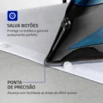 O sistema Salva Botões em toda a base protege os botões das suas roupas e garante acabamento perfeito.