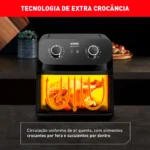 elimina a necessidade de óleo, tornando os alimentos mais saudáveis sem comprometer o sabor e a textura. A tecnologia de circulação de ar