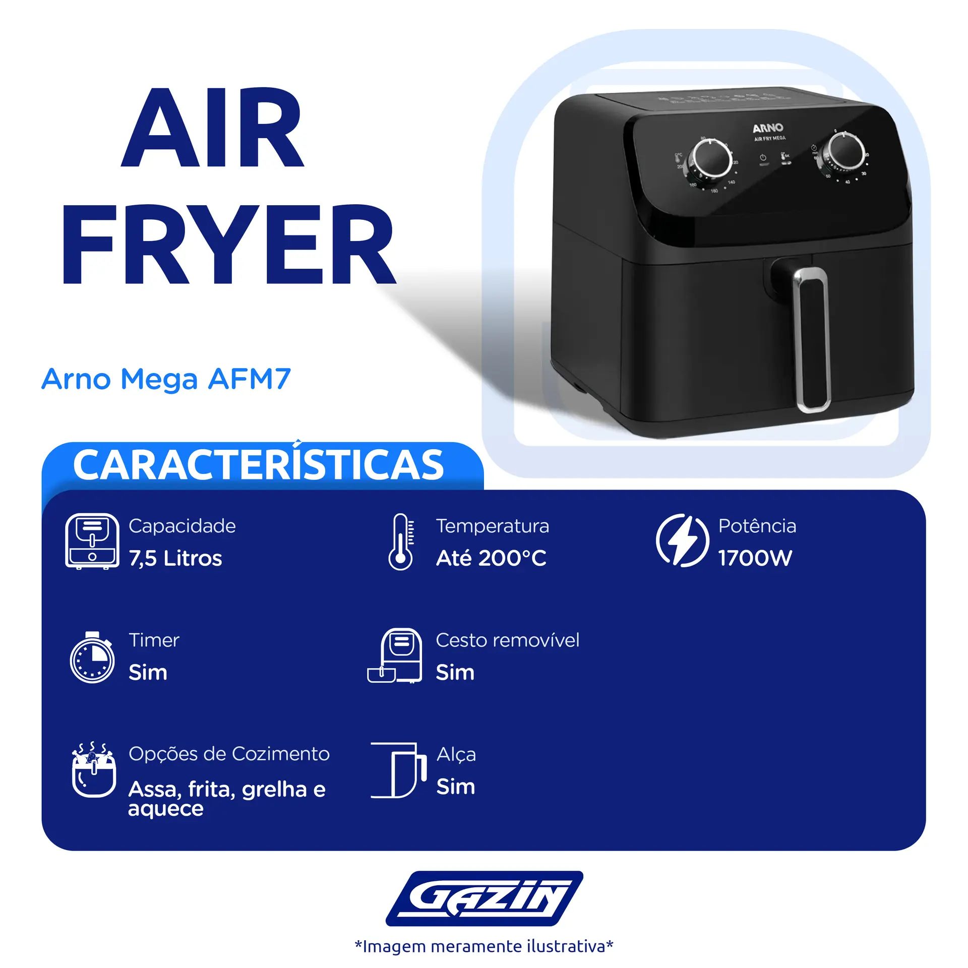 Início Eletroportateis Fritadeira Elétrica Air Fryer Arno Mega AFM7 7,5L 1700W – Preto – 220 Volts