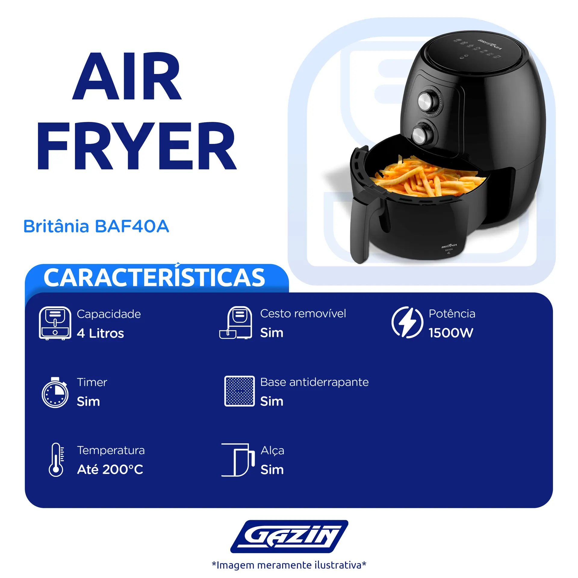 Fritadeira Elétrica Air Fryer Britânia BAF40A 4L 1500W – Preto – 220 Volts