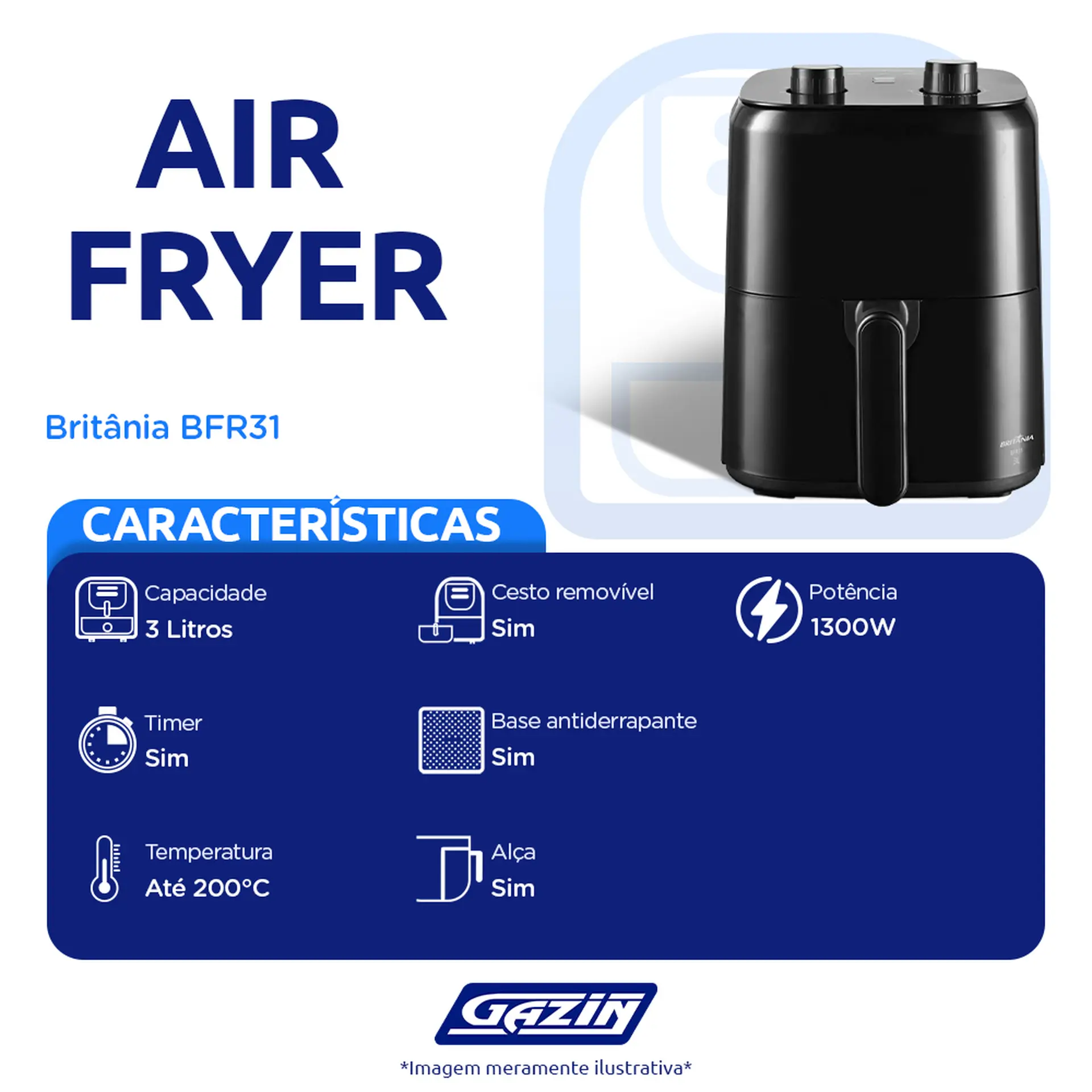 Fritadeira Elétrica Air Fryer BritÂnia BFR31 3L 1300W