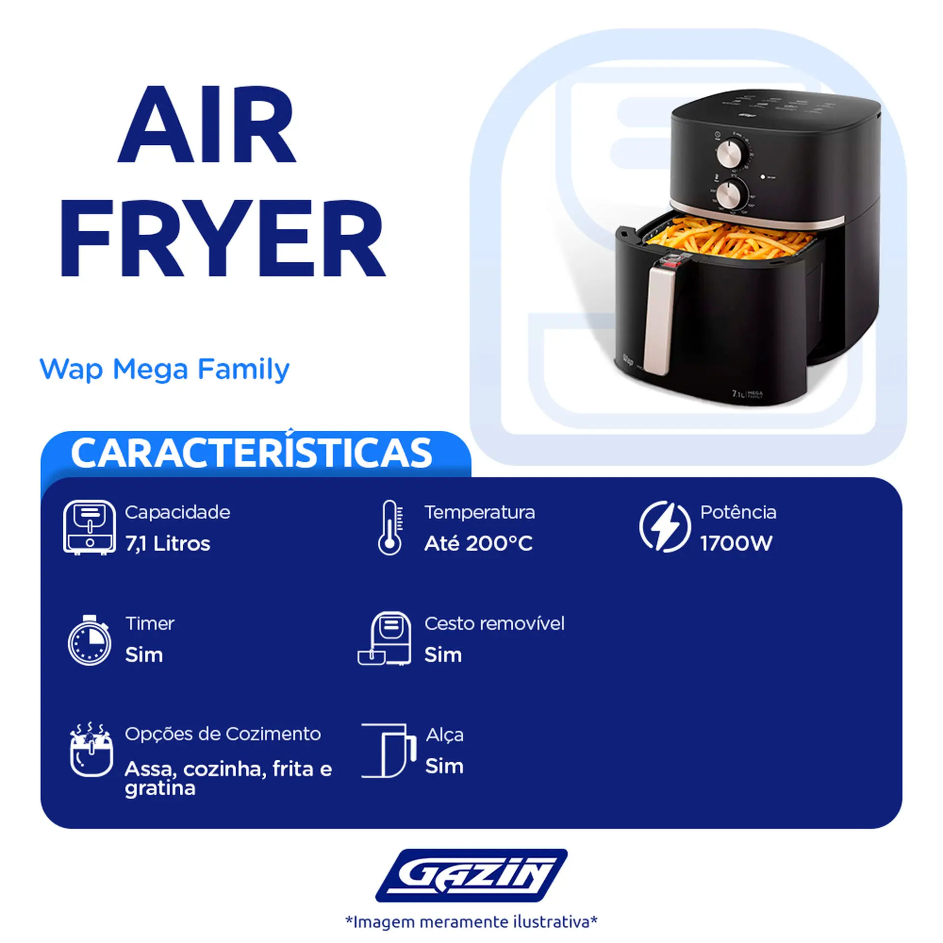 FRITADEIRA ELÉTRICA AIR FRYER WAP MEGA FAMILY 7,1L 1700W