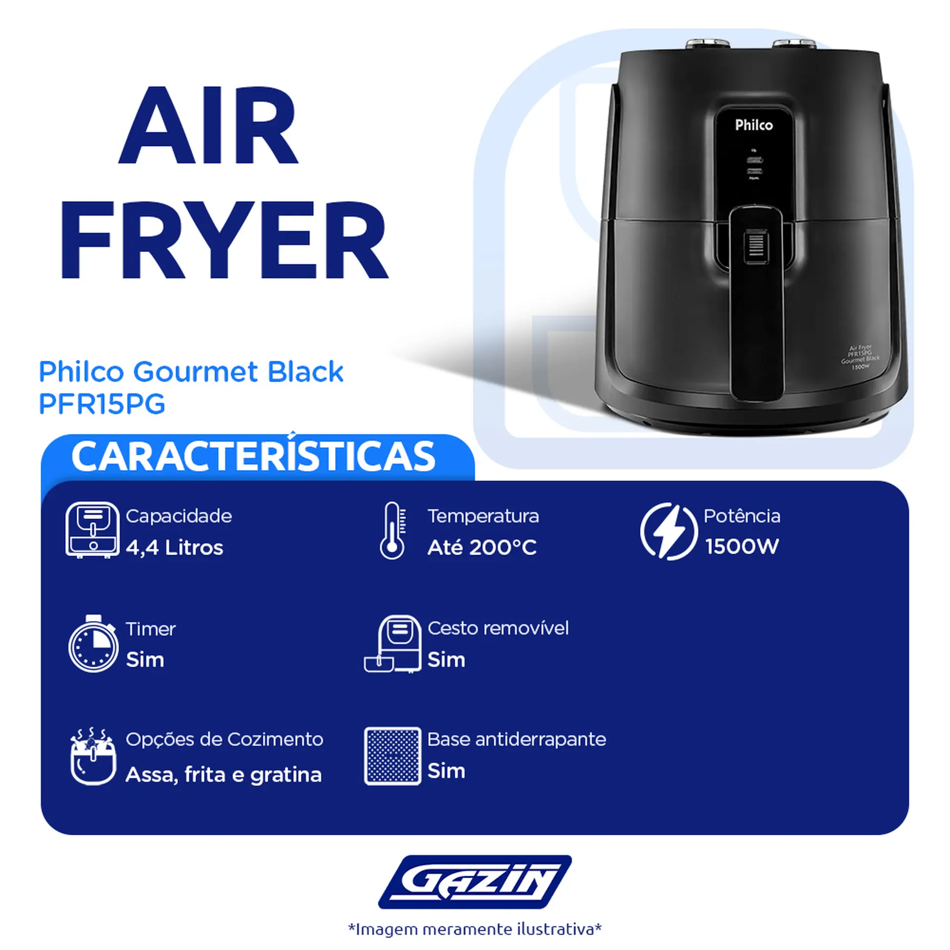 Fritadeira Elétrica Philco Air Fryer Gourmet Black 4,4L 1500W PFR15PG