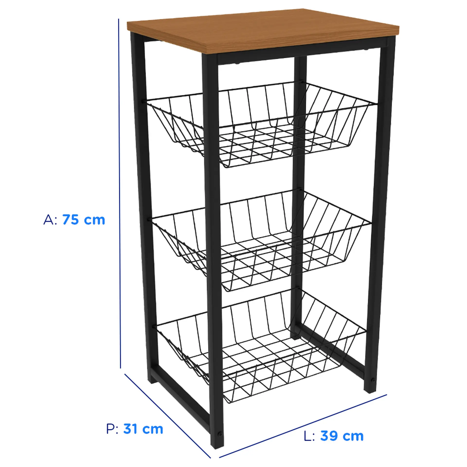 Fruteira Organizadora 40cm 3 cestos LI035 Kappesberg – Preto Fosco/Canela