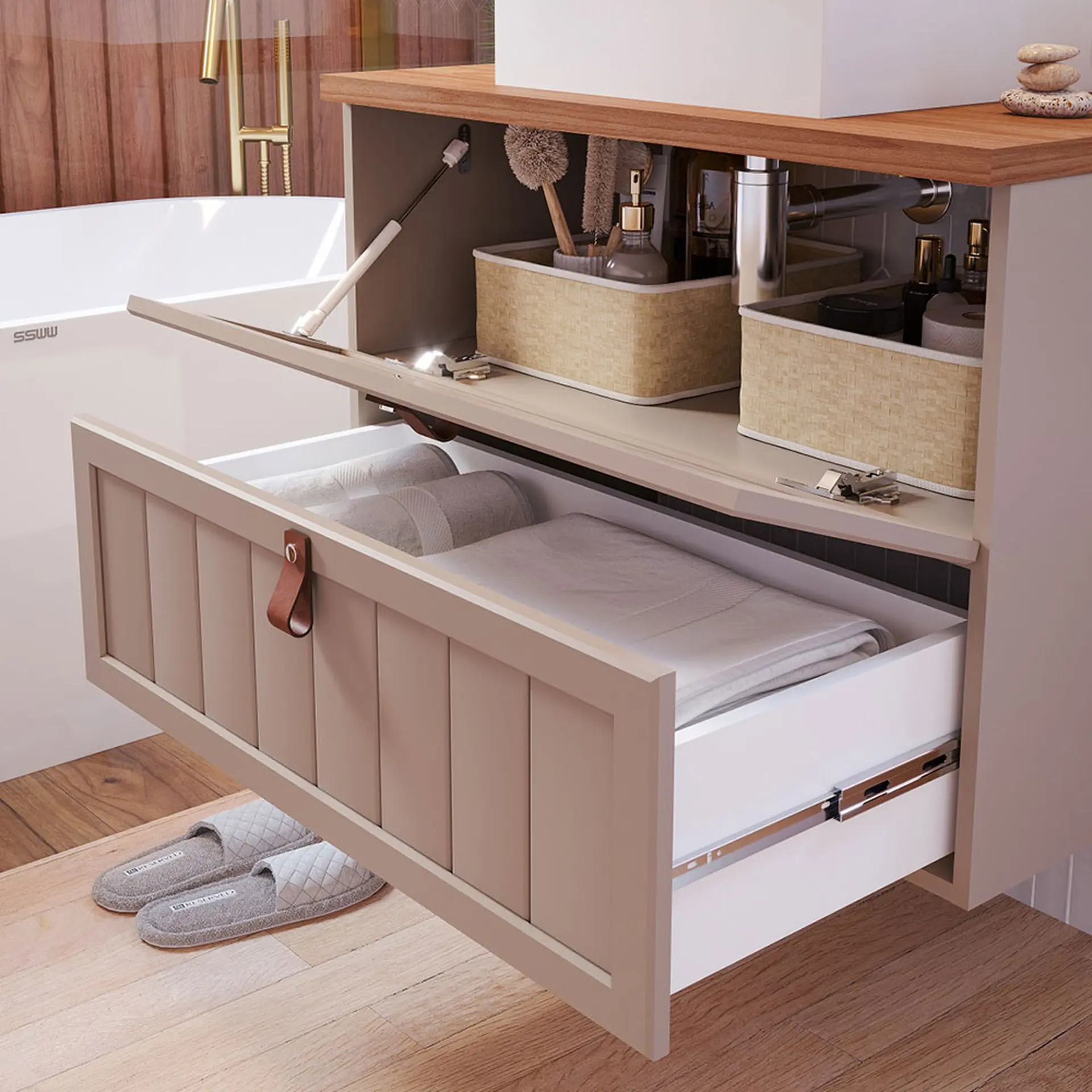 Banheiro mais elegante e organizado é aqui! O Gabinete MGM Aruba traz porta, gaveta e cuba. Assim, você ganha espaço para guardar objetos pessoais, artigos de higiene e muito mais! Beleza nos detalhesO gabinete possui 1 porta basculante e 1 gaveta em MDF com corrediças telescópicas super espaçosas. A cuba em mármore sintético combina charme e qualidade, devido à sua maior resistência a arranhões e manchas. O banheiro merece um gabinete que complete o ambiente!Sobre a marca: qualidade MGMA MGM tem quase 20 anos de experiência na fabricação de móveis para banheiros e cozinhas completas. A matriz da empresa fica bem próxima a Vitória, capital do Espírito Santo. Transparência, qualidade, compromisso com os clientes e o meio ambiente é aqui.