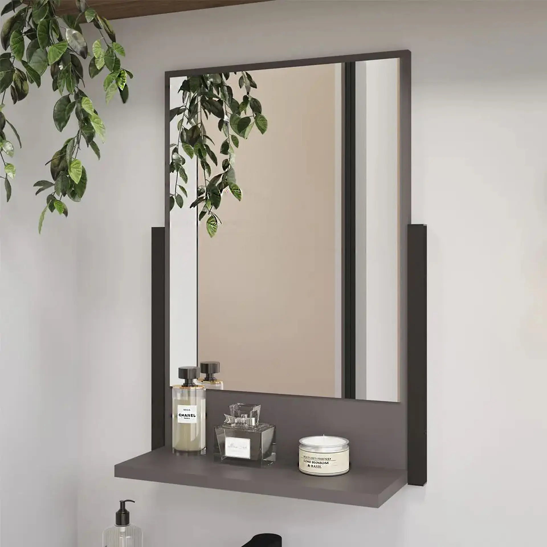 Gabinete para Banheiro 1 Porta Basculante com Espelheira MDF Ipanema MGM – Titanio