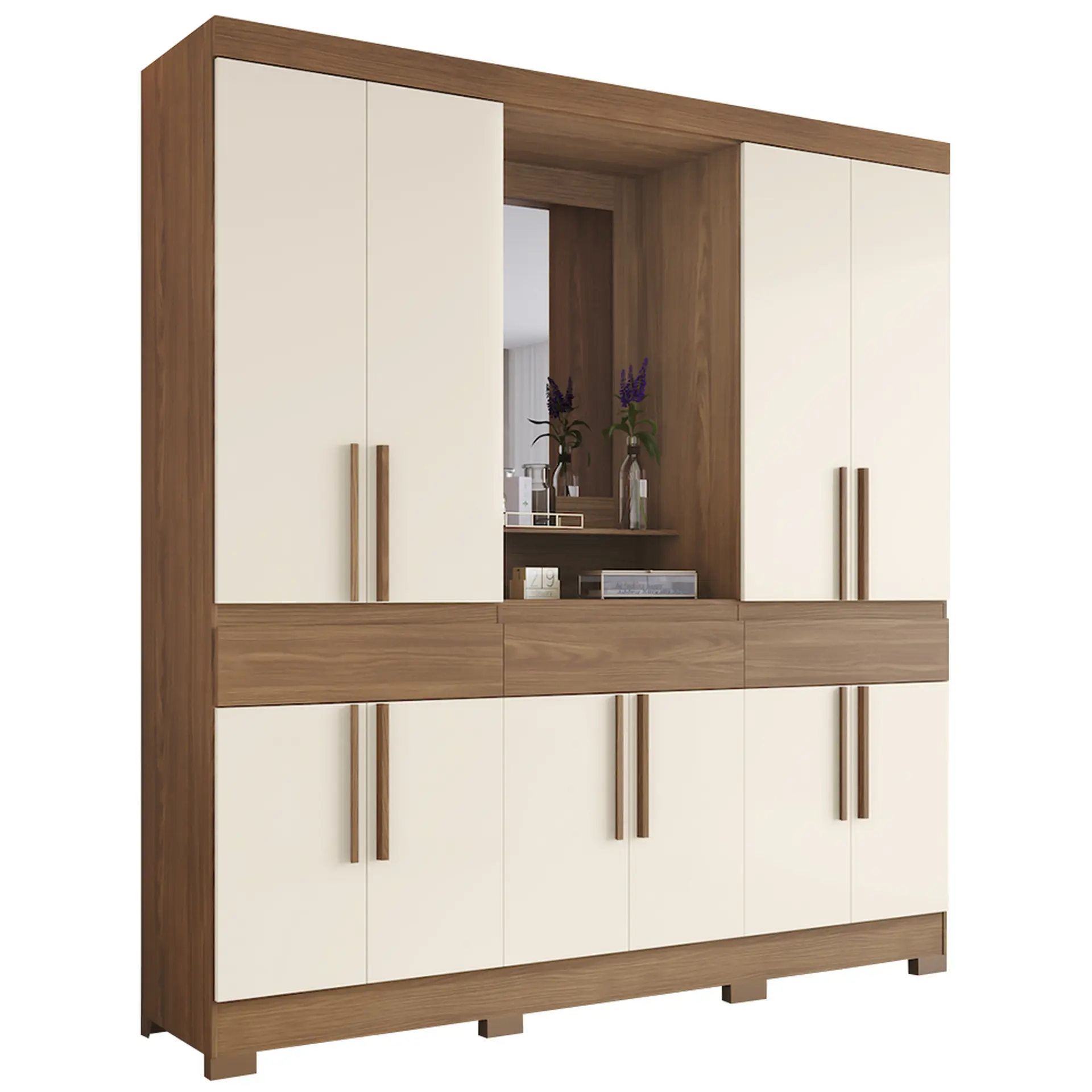 Guarda-Roupa Casal 10 Portas 3 Gavetas Capela B374 Henn Roupeiro – Nature/Off White