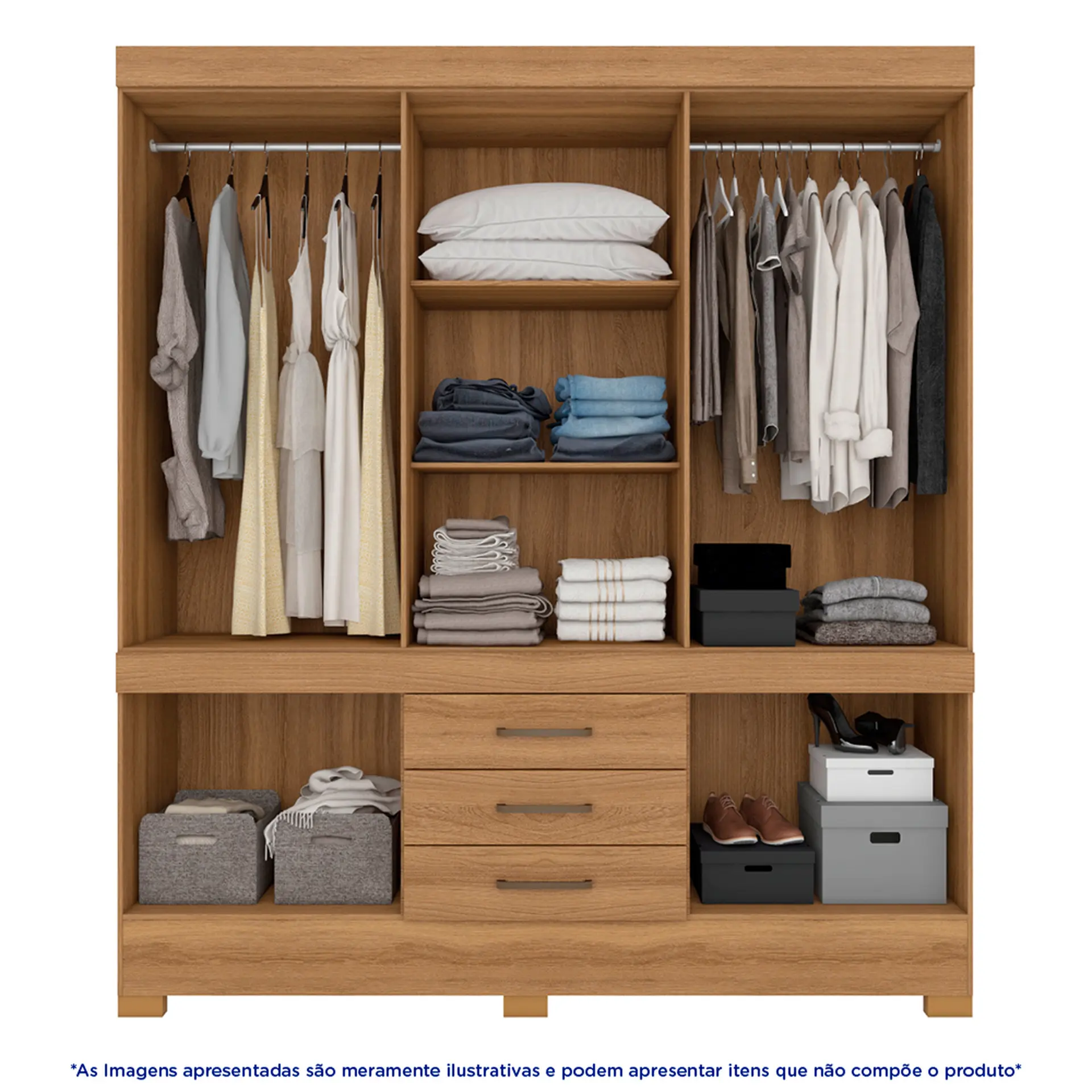 Guarda-Roupa Casal 2 Portas Correr 3 Gavetas Ilhéus Panan Roupeiro - Cinamomo/ Off white