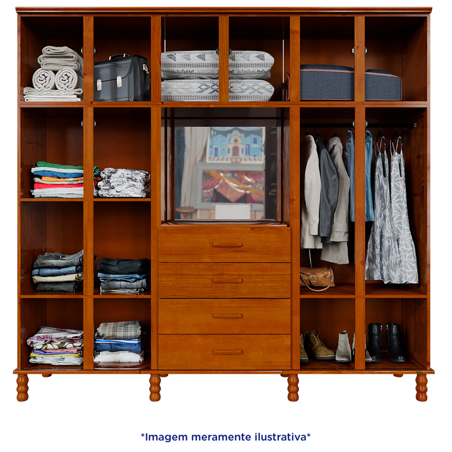 Guarda-Roupa Casal 10 Portas Bater 4 Gavetas Serpil Capelão – Cedro Acetinado