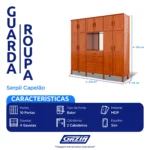 O Roupeiro Serpil Casal Capelão foi pensado para quem busca espaço, beleza e durabilidade em um só móvel. Com um visual elegante e acabamento de alta qualidade, ele oferece 10 portas de abrir e 04 gavetas espaçosas, perfeitas para manter tudo em ordem: roupas, sapatos, acessórios e o que mais você precisar.