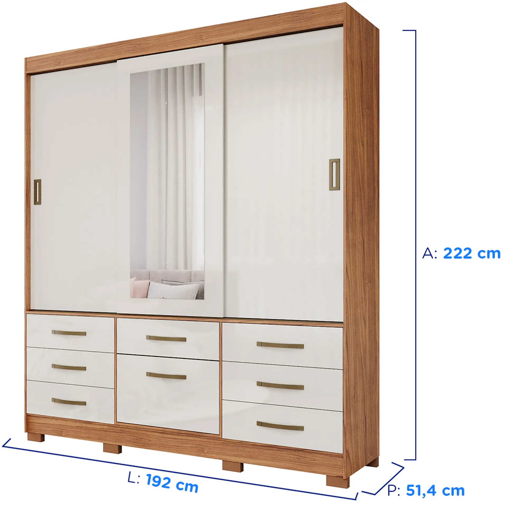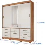 Guarda-Roupa Casal 3 Portas Correr 7 Gavetas Luiza Panan Roupeiro – Cinamomo/ Off white