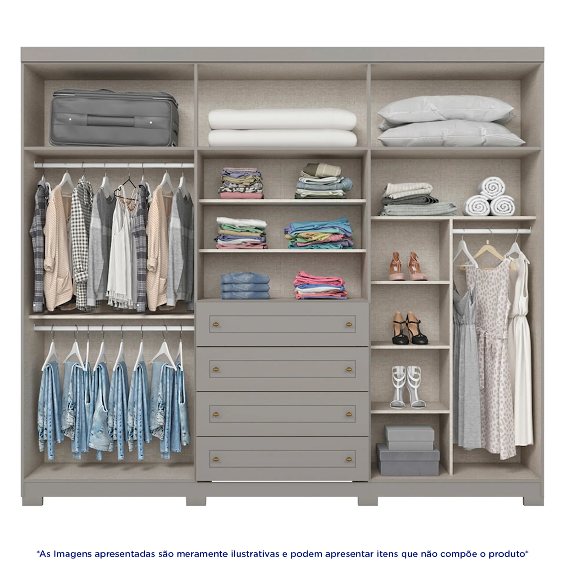 Guarda-Roupa Casal 6 Portas Bater 4 Gavetas Americano Henn Roupeiro – Cinza