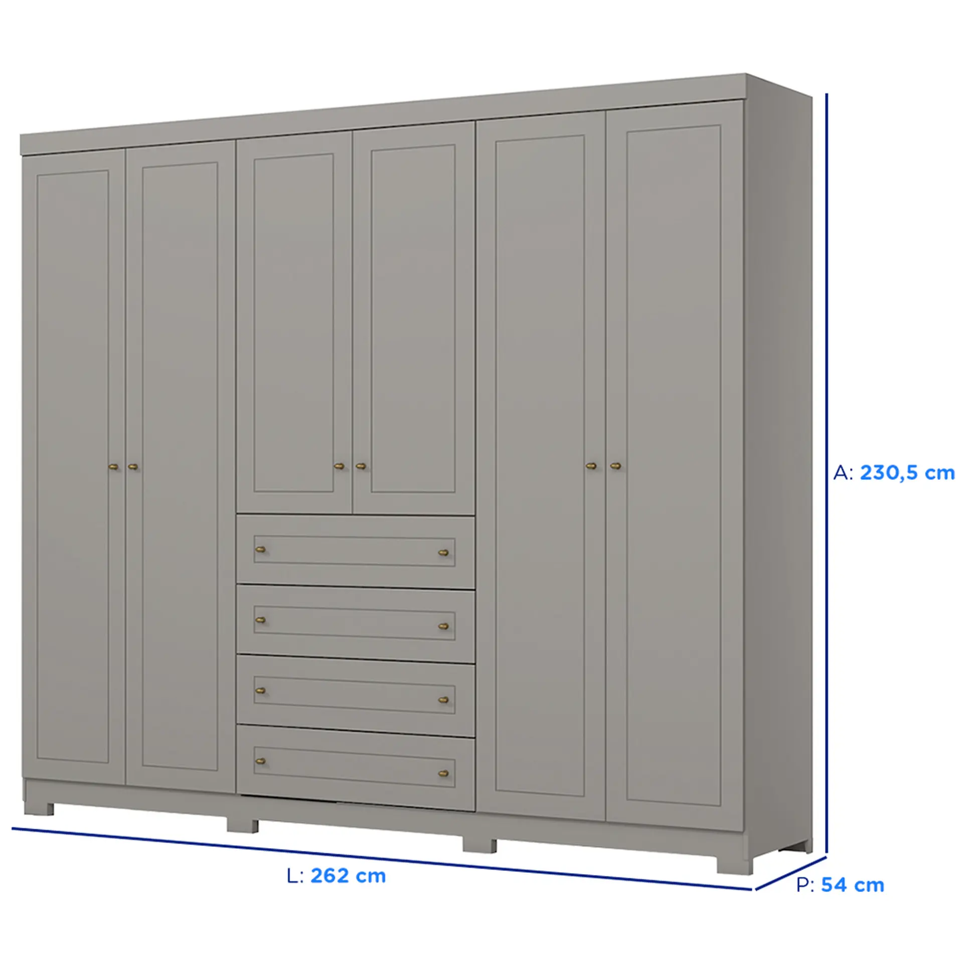 Em até 1x de R$921,38 sem jurosEm até 12x de R$87,13 com juros À vistaR$829,24no PixGuarda-Roupa Casal 6 Portas Bater 4 Gavetas Americano Henn Roupeiro – Cinza