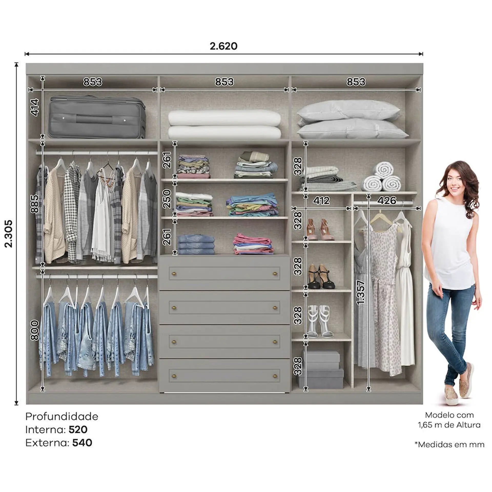 Produzido com materiais de alta qualidade como MDP e MDF, ele se destaca pelo acabamento impecável e pela resistência, proporcionando durabilidade e beleza ao longo do tempo. As 6 portas oferecem fácil acesso ao conteúdo armazenado, enquanto as 4 gavetas proporcionam mais espaço para itens menores, como roupas íntimas, acessórios e roupas de cama. Além disso, o design elegante e moderno combina com diferentes estilos de decoração, trazendo um toque de classe e sofisticação ao seu quarto.