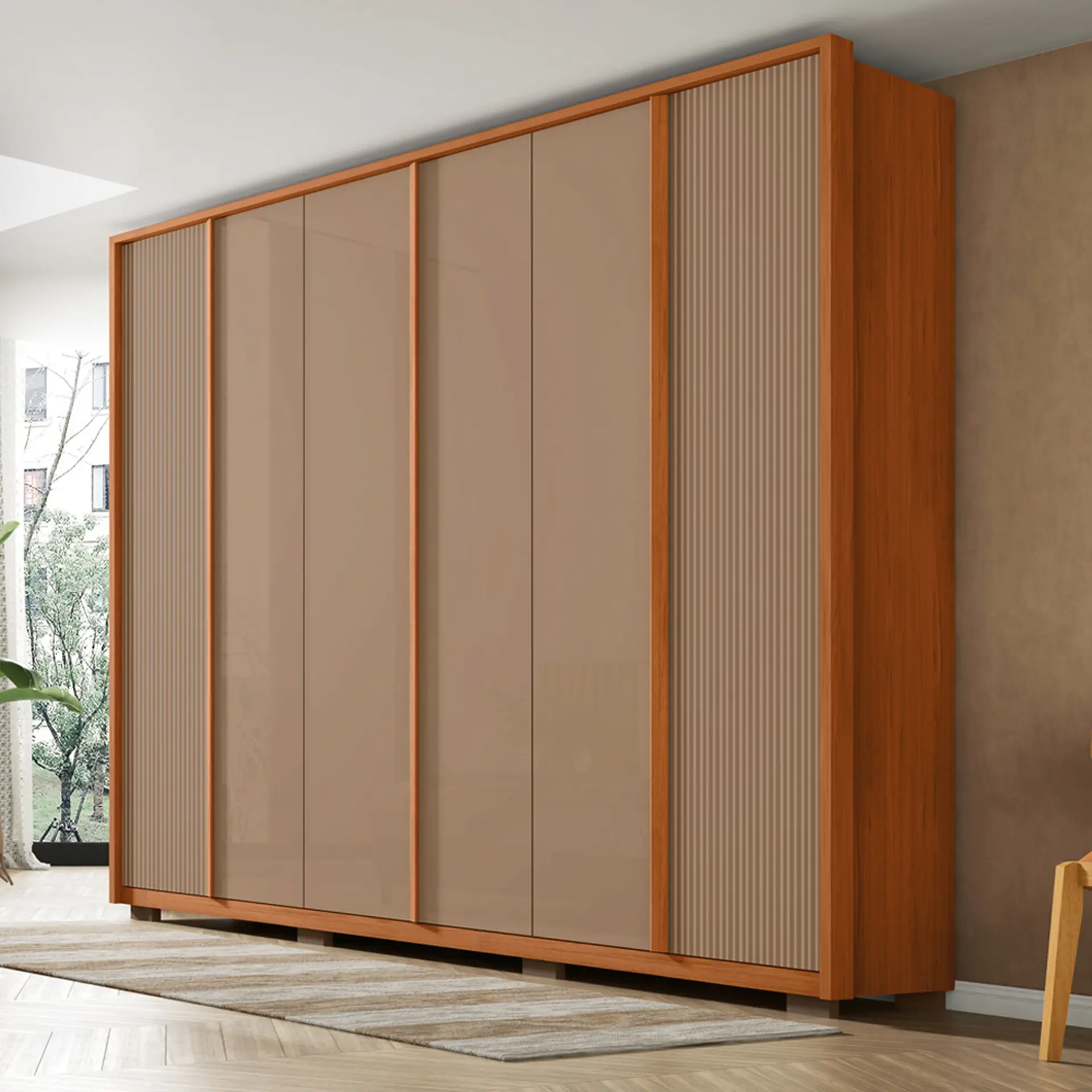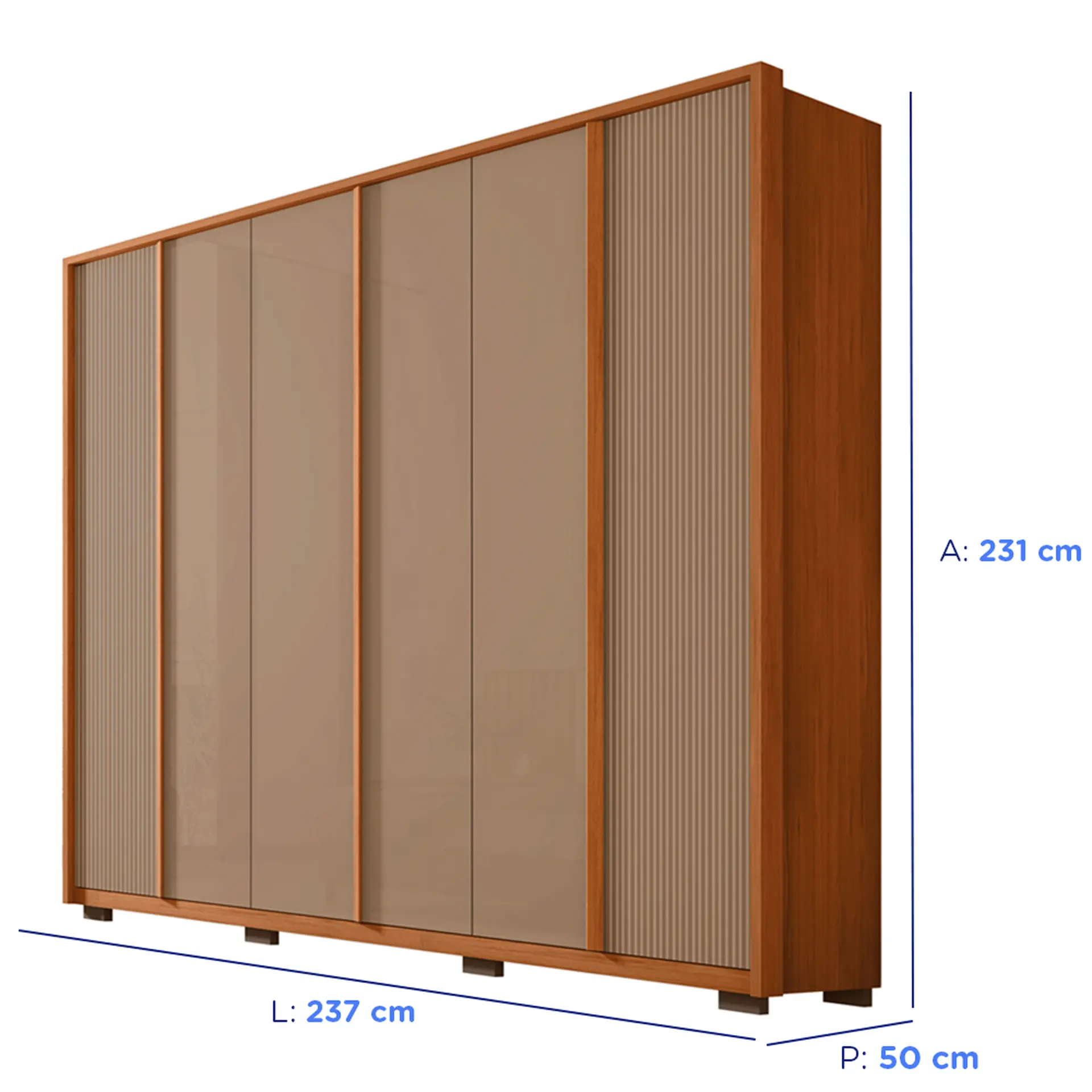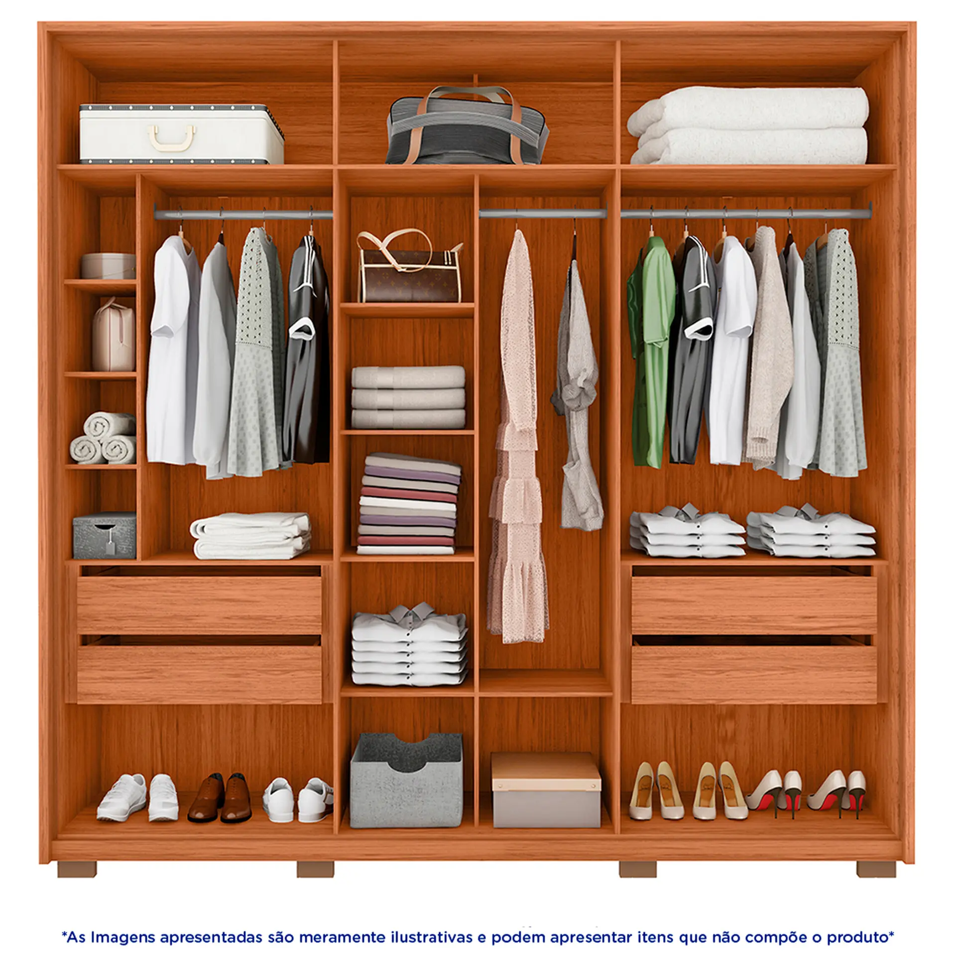 Guarda-Roupa Casal 6 Portas Bater 4 Gavetas Genova Santos Adira - Wood/Couro Terracota