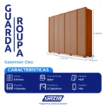 Guarda-Roupa Casal 6 Portas Bater 4 Gavetas Cleo Caemmun Roupeiro O é a combinação perfeita entre funcionalidade e design moderno. Com estrutura em MDF, o móvel oferece alta durabilidade e resistência, ideal para quem busca organização e estilo no quarto. Ele garante fácil acesso aos compartimentos e maior fluidez no dia a dia. Confira mais detalhes: Amplo espaço interno Com 6 portas de bater, 4 gavetas e 3 cabideiros, o roupeiro Cleo oferece compartimentos bem distribuídos para armazenar roupas, acessórios e calçados de forma organizada. Qualidade e resistência Fabricado em MDF, o guarda-roupa garante maior durabilidade, estabilidade e acabamento refinado, ideal para quem valoriza móveis robustos e elegantes. Design versátil e moderno O visual com linhas retas traz um toque contemporâneo e discreto, permitindo combinar facilmente com diferentes estilos de decoração no quarto de casal.Sobre a marca: qualidade CaemmunA Caemmun Movelaria está situada em Arapongas, um dos maiores polos moveleiros do país. A Caemmun iniciou o Grupo Munhoz Caetano, composto por grandes marcas, como a Caemmun, Aroma e a Líder Design. Com uma experiência de mais de 27 anos no mercado moveleiro e preocupada com a preservação dos recursos naturais, surgiu a Caemmun Agropecuária, que consiste em fazendas de Eucalipto e Pinus para a fabricação dos móveis.