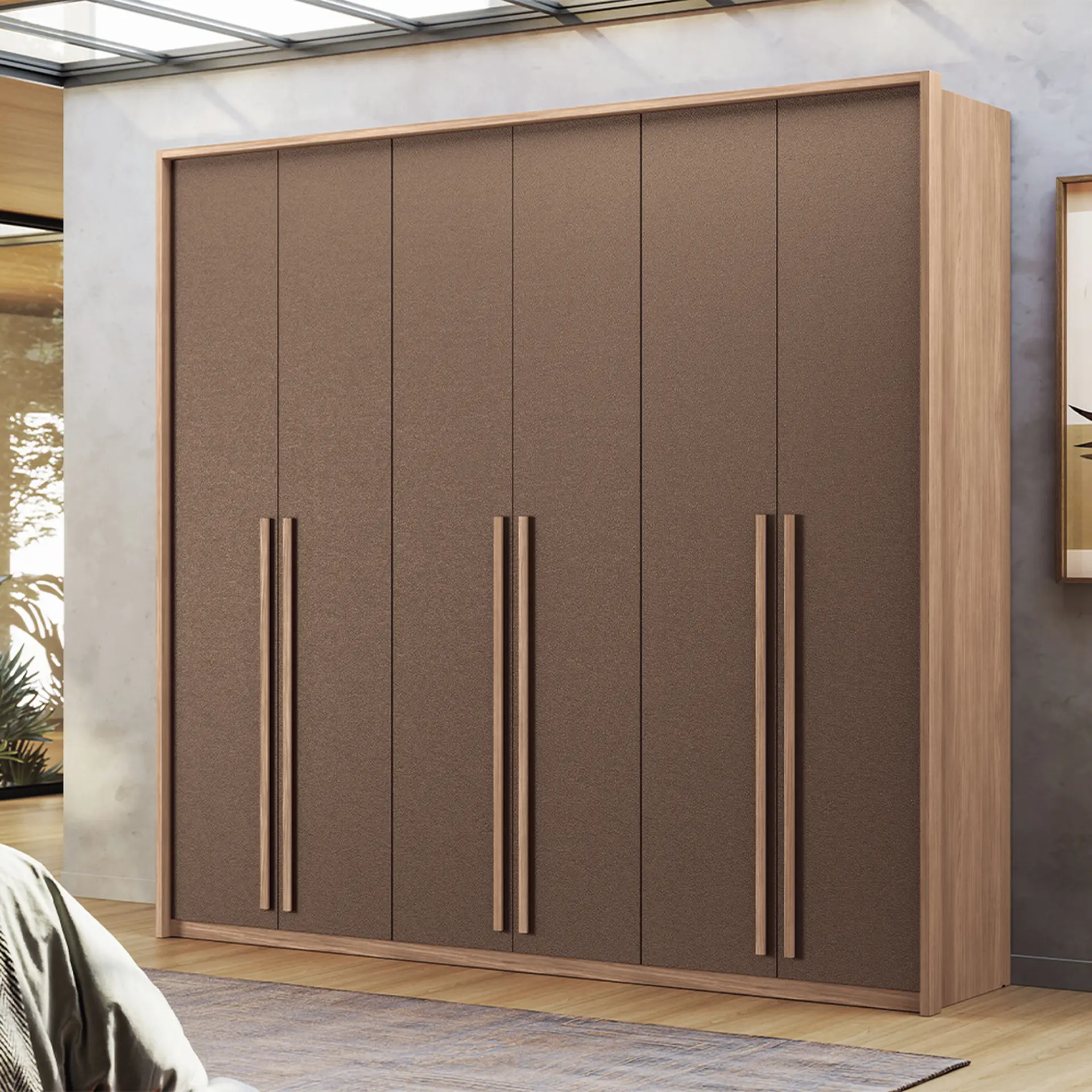 Guarda-Roupa Casal 6 Portas Bater 4 Gavetas Genova Santos Adira – Wood/Couro Terracota