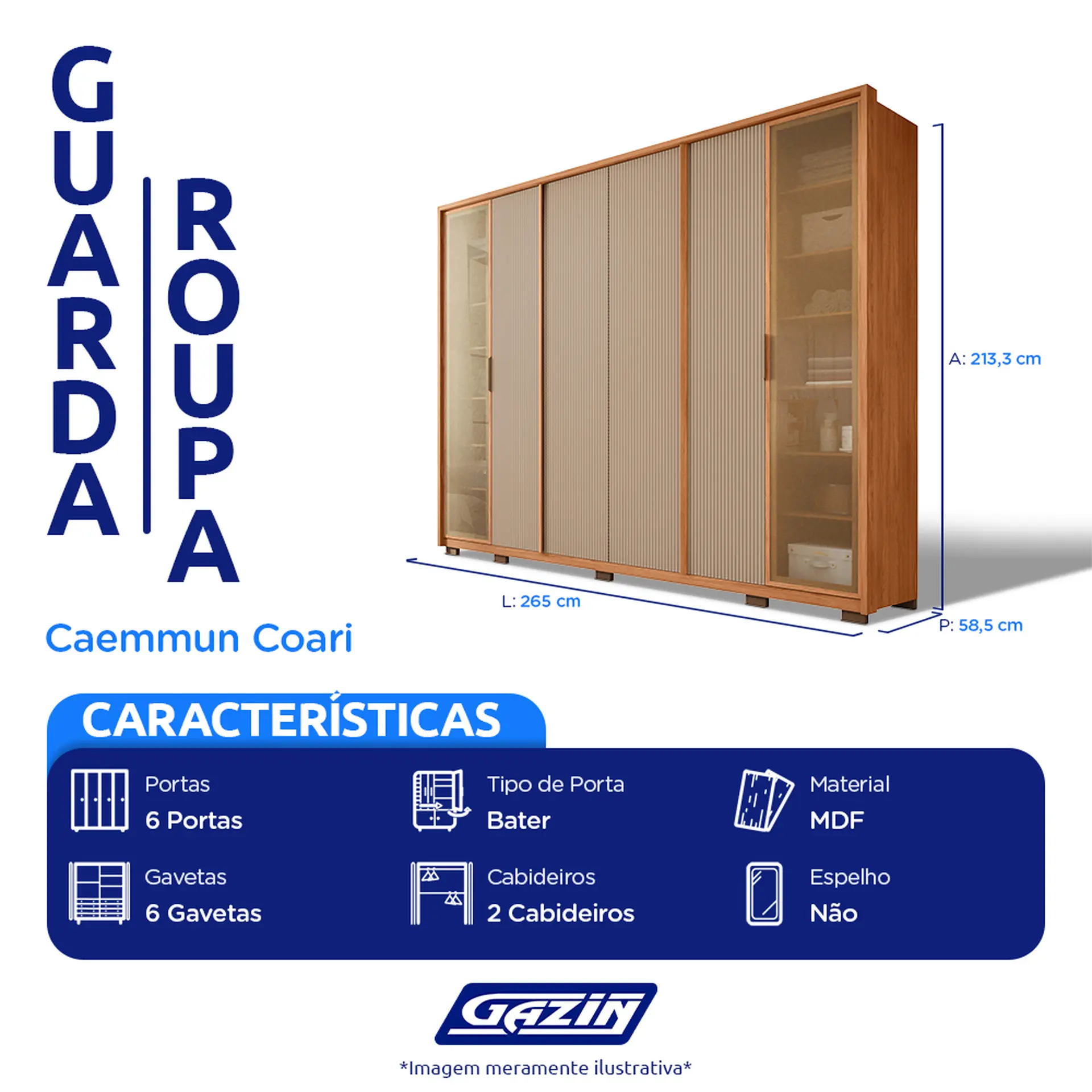 GUARDA-ROUPA CASAL 6 PORTAS 6 GAVETAS COARI CAEMMUN ROUPEIRO